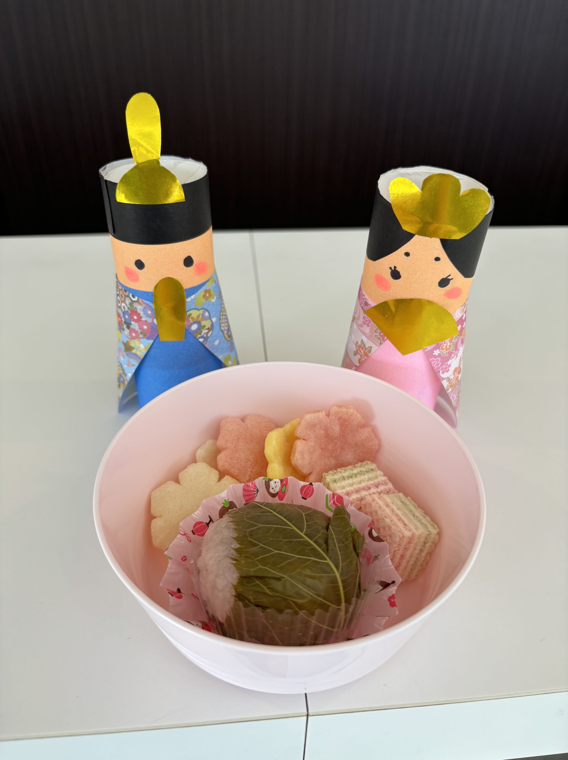 今日はおやつにも桜餅や、ひなあられ、白酒の代わりに白桃のカルピスを用意して、みんなで「うれしいひなまつり」を歌ってからいただく事に😋