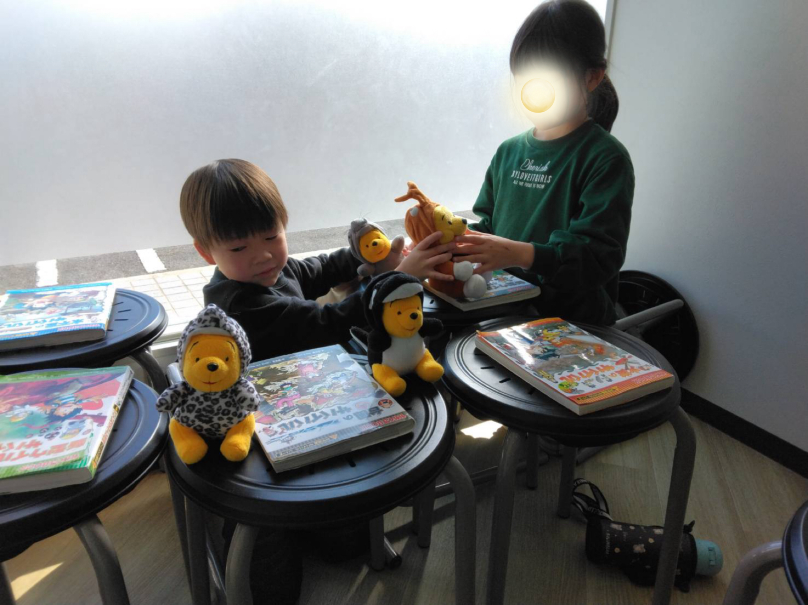 宿題を終えた一年生は秘密基地ごっこです。