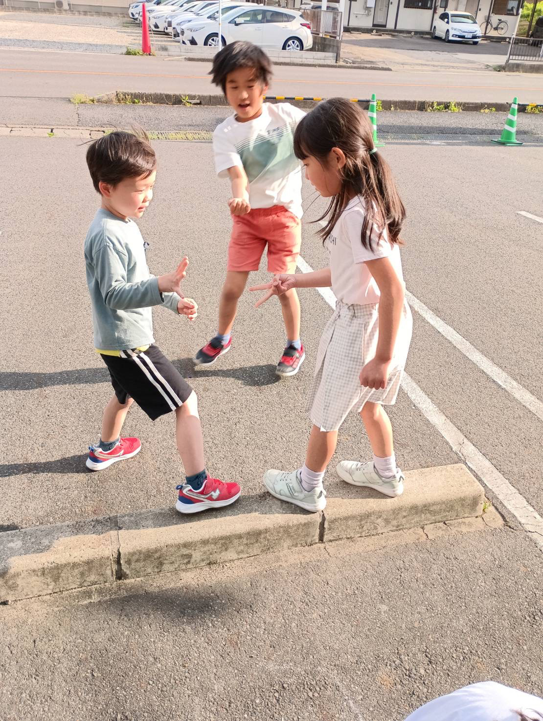 お迎えに来るまで、外遊びをいっぱい楽しんだ子どもたち。