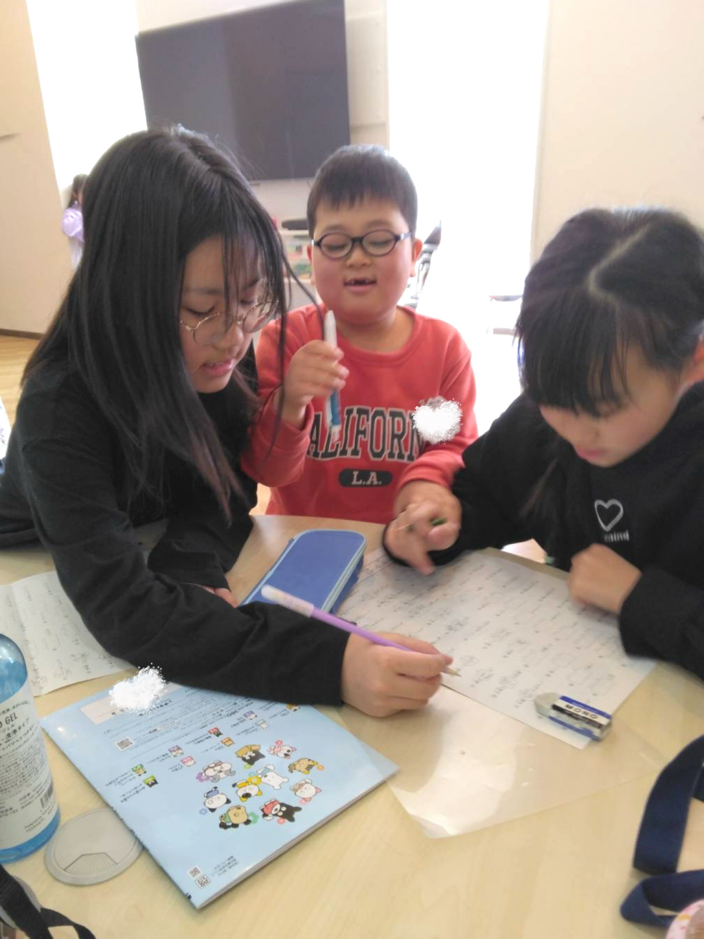 こちらのお友だちは、上級生の宿題を一緒に考えているのかな?🤭