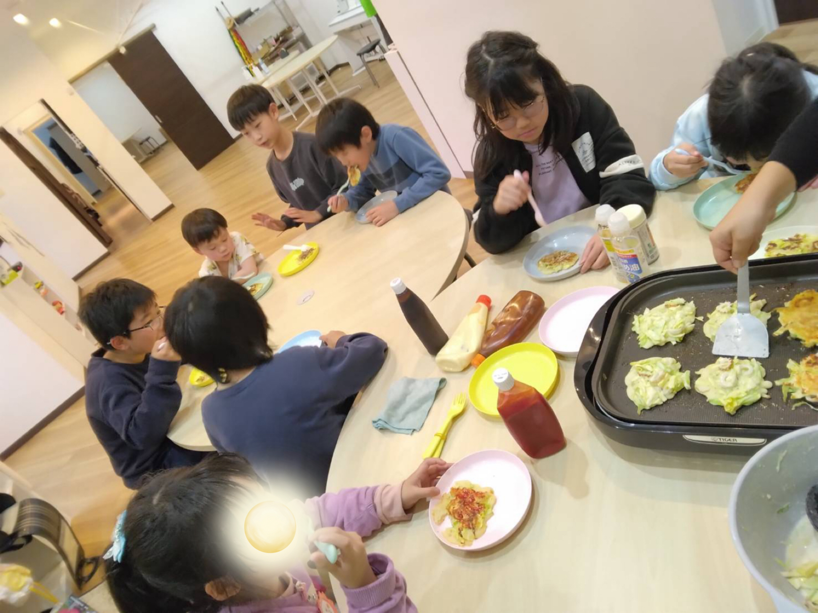 そして、今日は手作りおやつでお好み焼きを食べました!