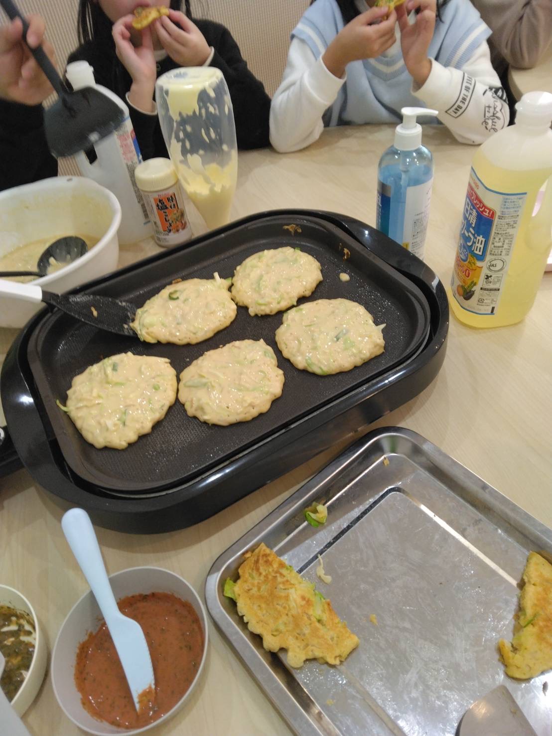 おやつは久しぶりにホットプレートを出してお好み焼き😆