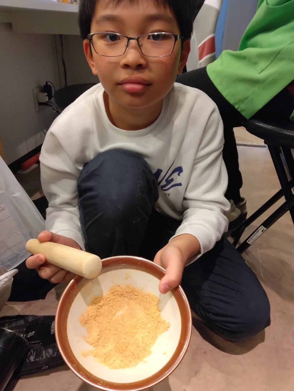 先生からすり鉢とすりこぎも借りて更にサラサラに😊