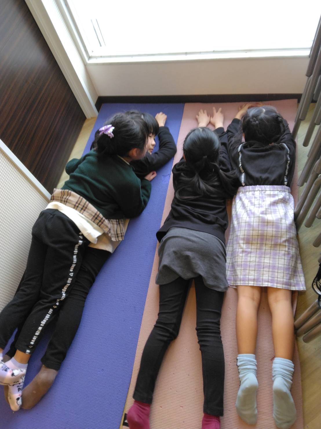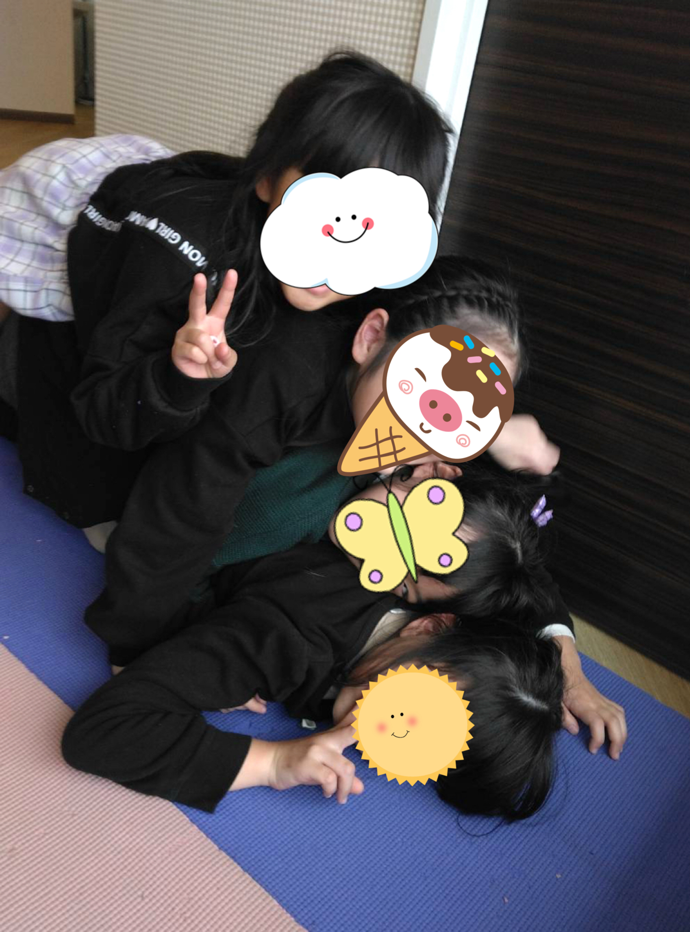 女の子たちがマットを敷いて何をしているのかな?と覗いてみると…