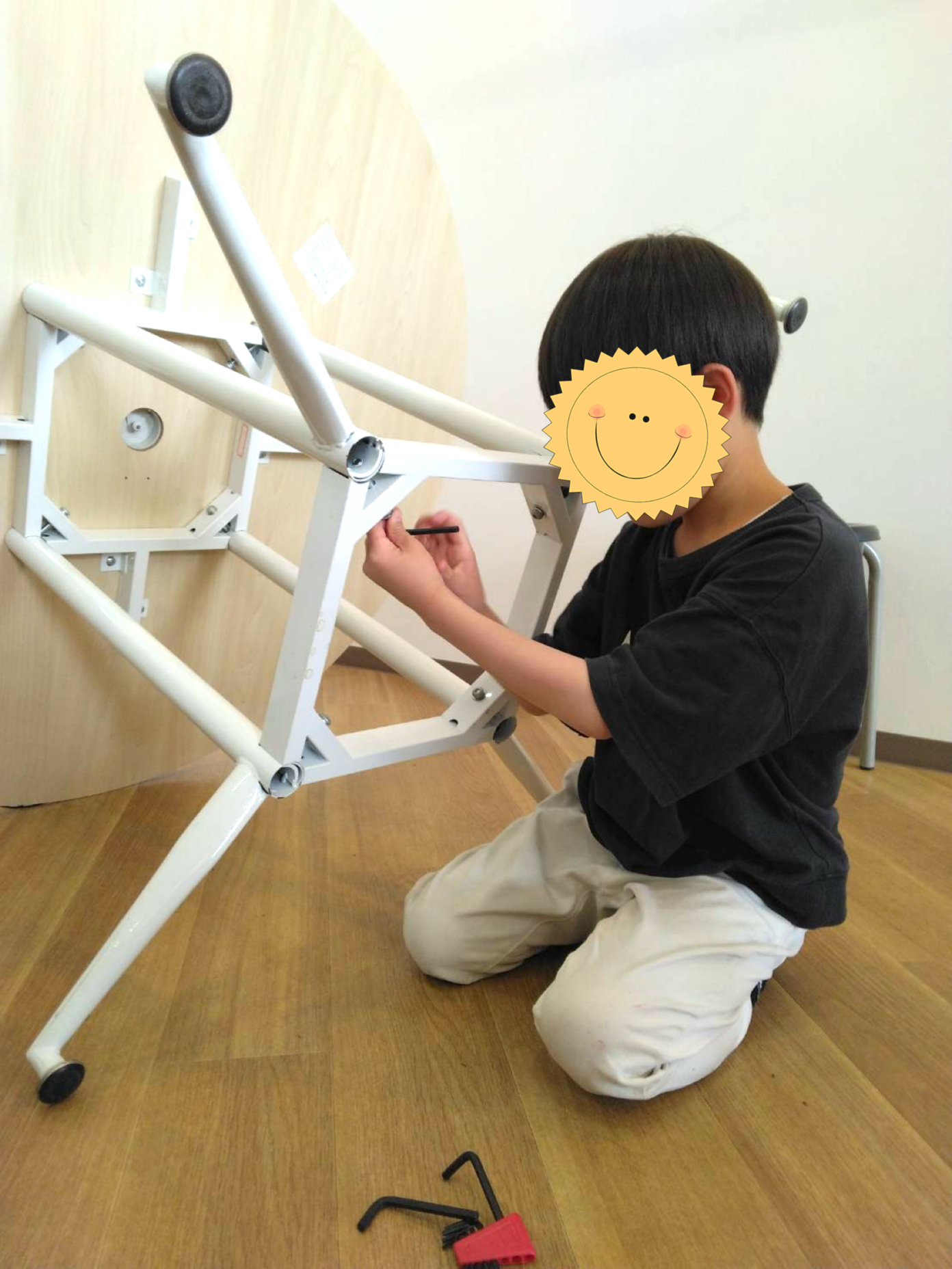 その後、こちらのお友だちは机のボルトを締める作業をお手伝い🔩