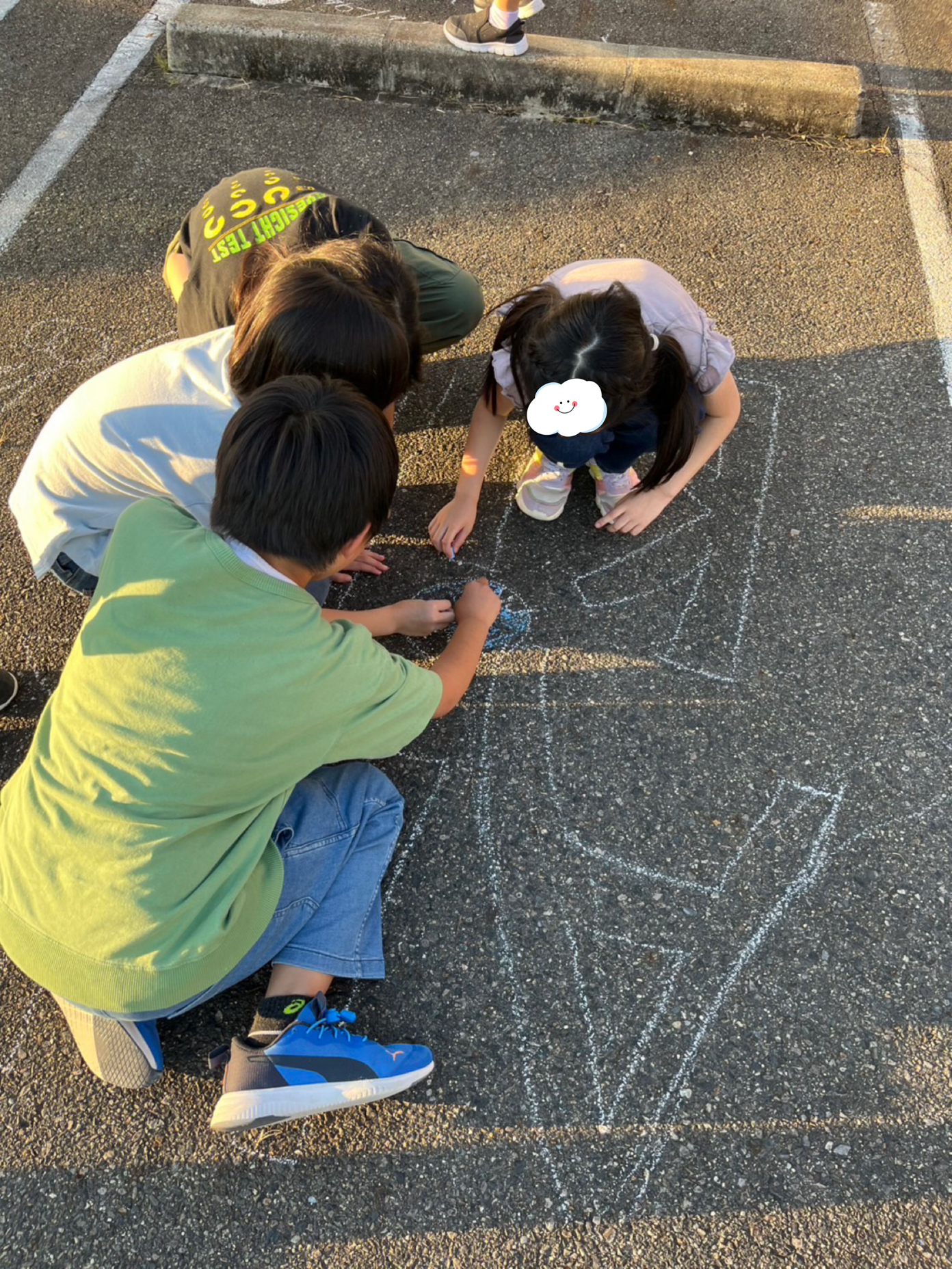 最後に今日も駐車場でお絵描きをして遊んだのですが、