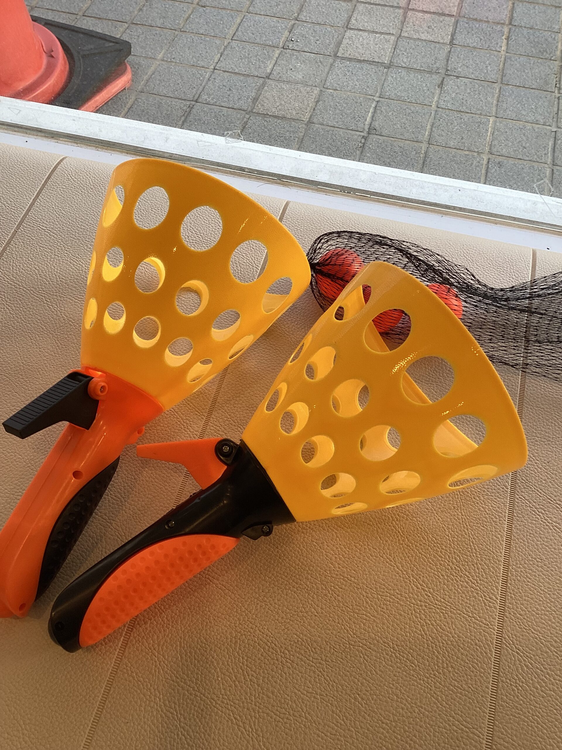 ピンポン玉のように軽い球を投げ合いキャッチしていくので、なかなか難しい様子(笑)