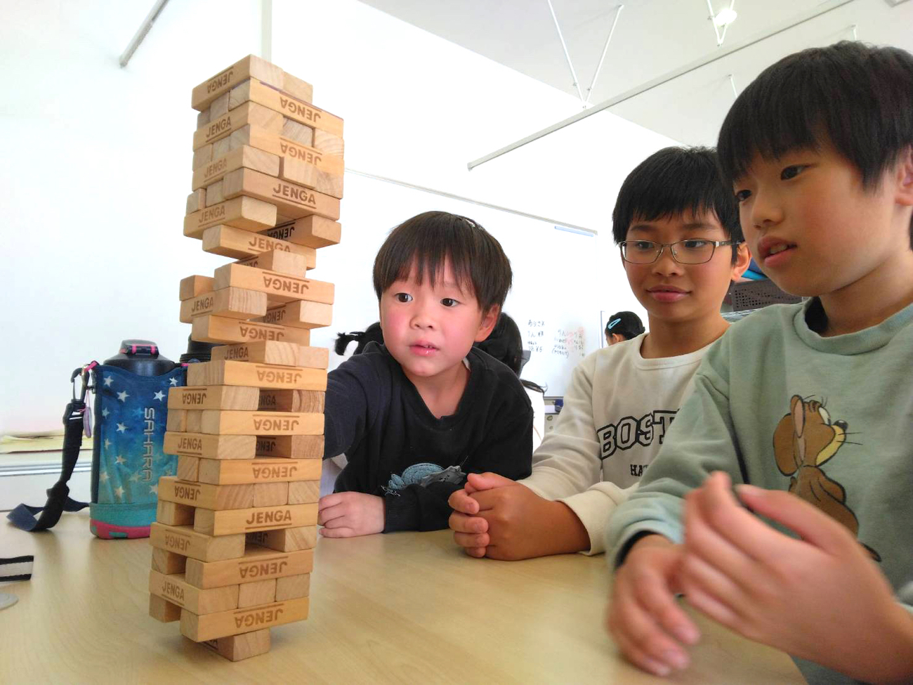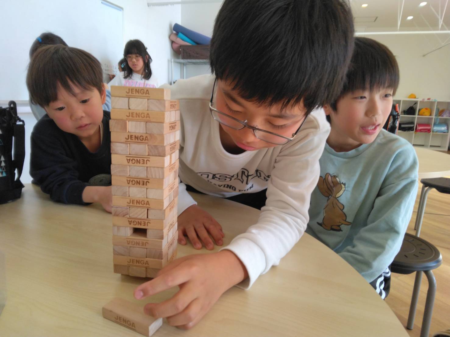 男の子たちはジェンガ大会‼️チャレンジャーが下の方からどんどんジェンガを取っていましたよ!