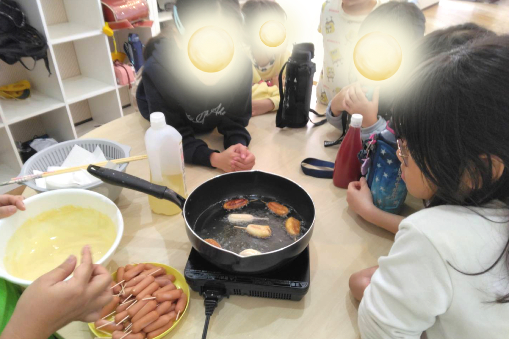揚げたてのミニアメリカンドックは子どもたちに大好評でした‼️