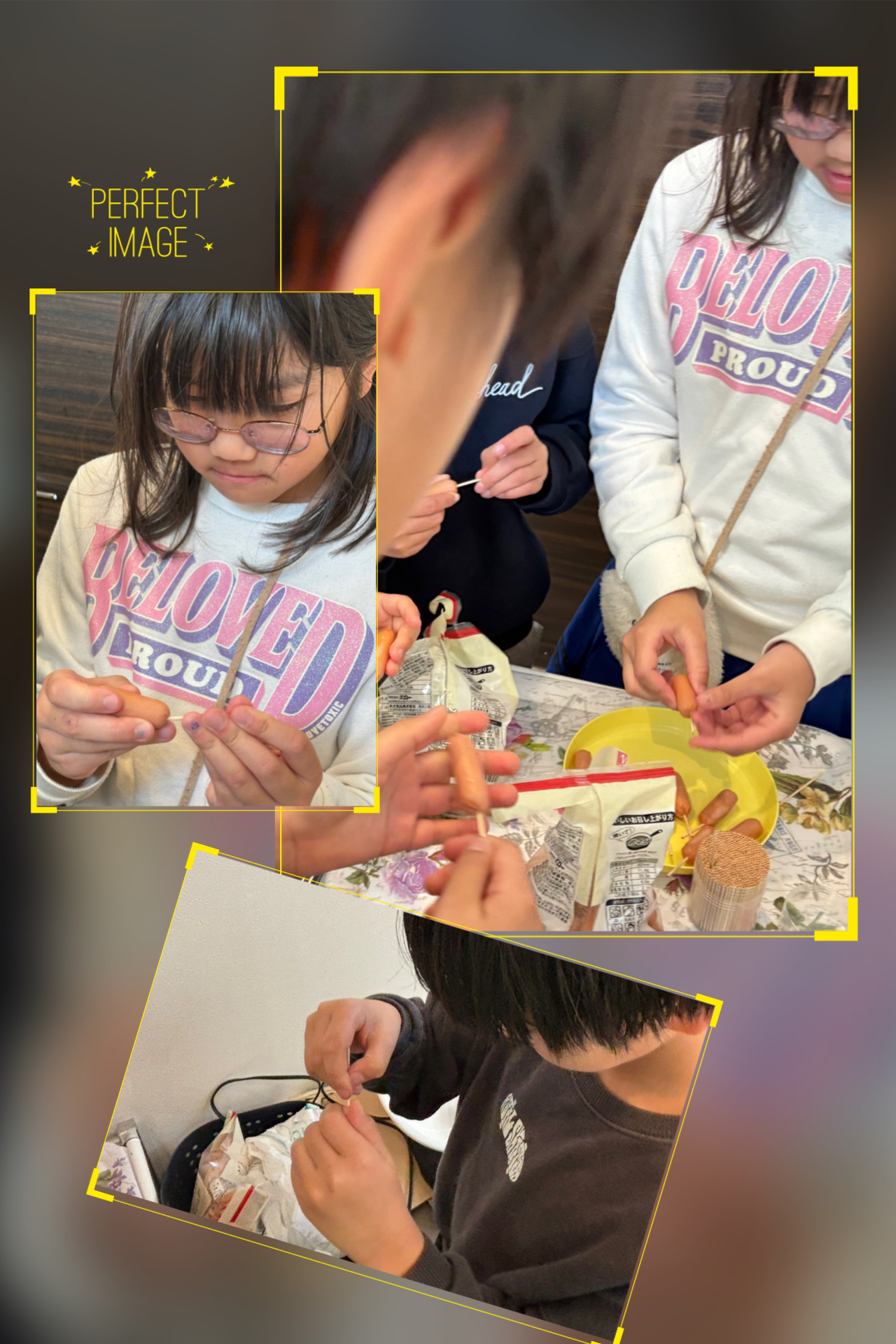 子どもたちも、ウインナーにつまようじを刺すのを手伝ってくれました!