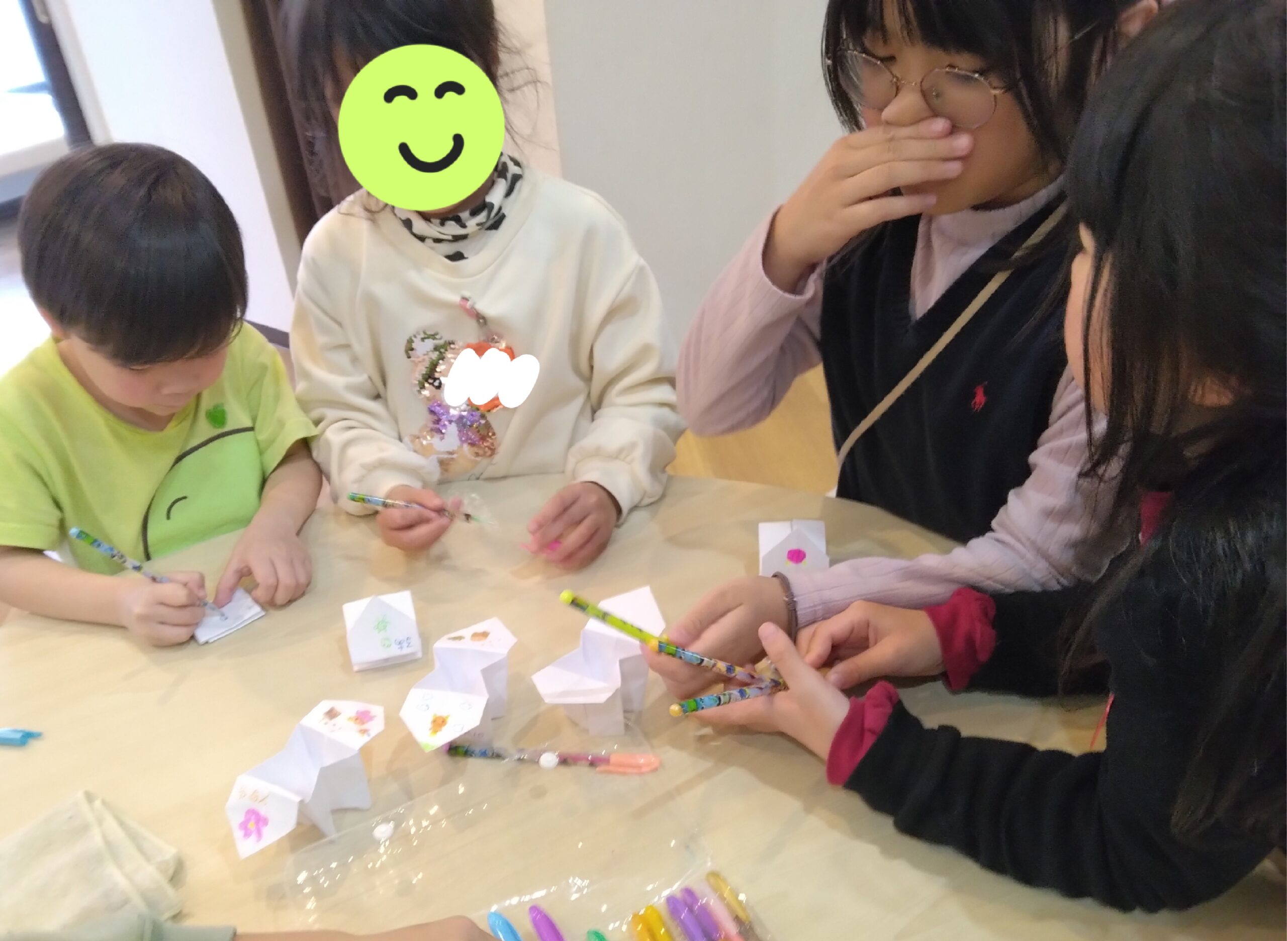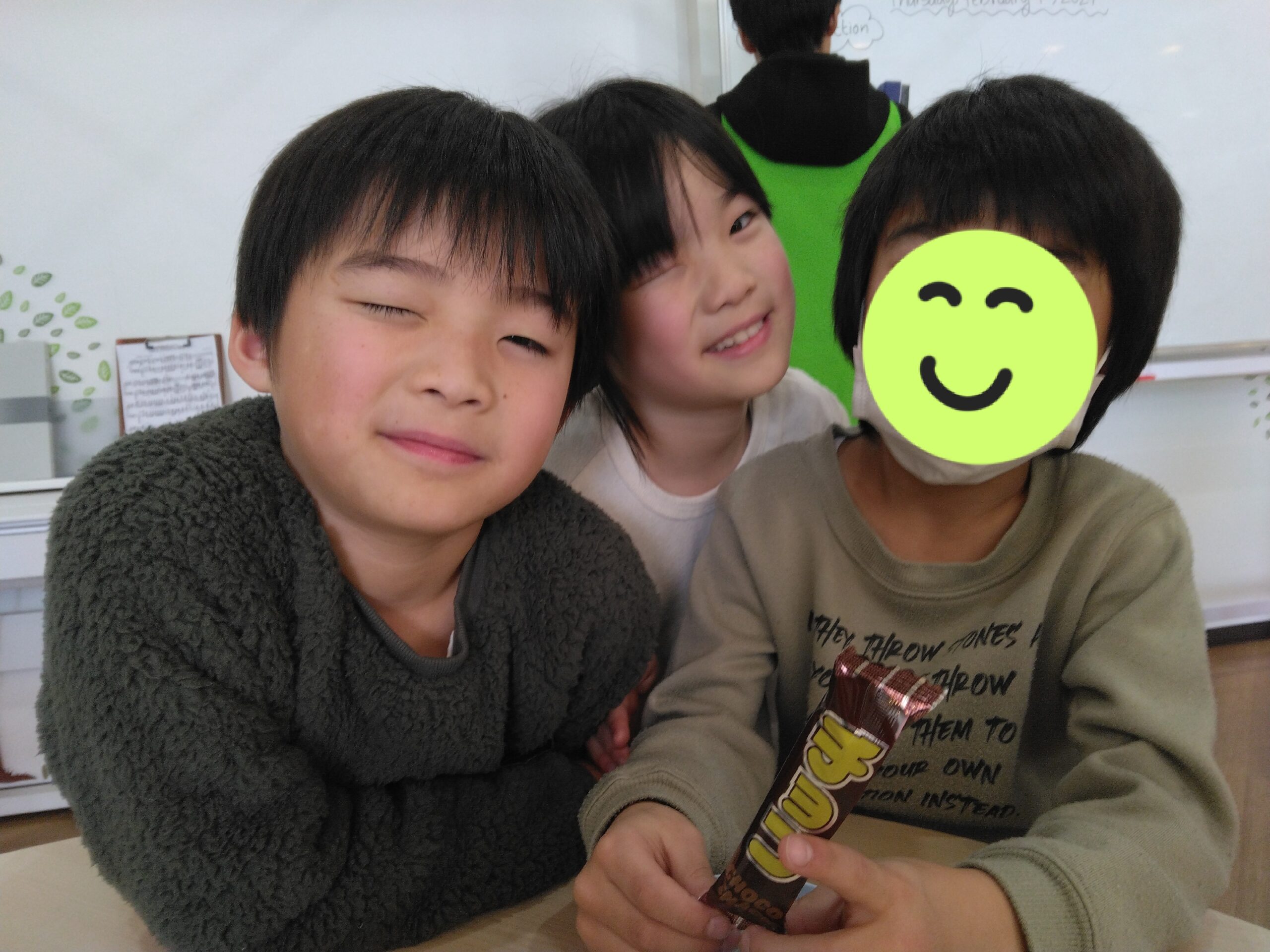 おやつ🍪を食べながら、「ねぇ、ウインク😉ってできる?」なんて話題が子供たちから出たので、「ハイ、チーズ!😊」📷