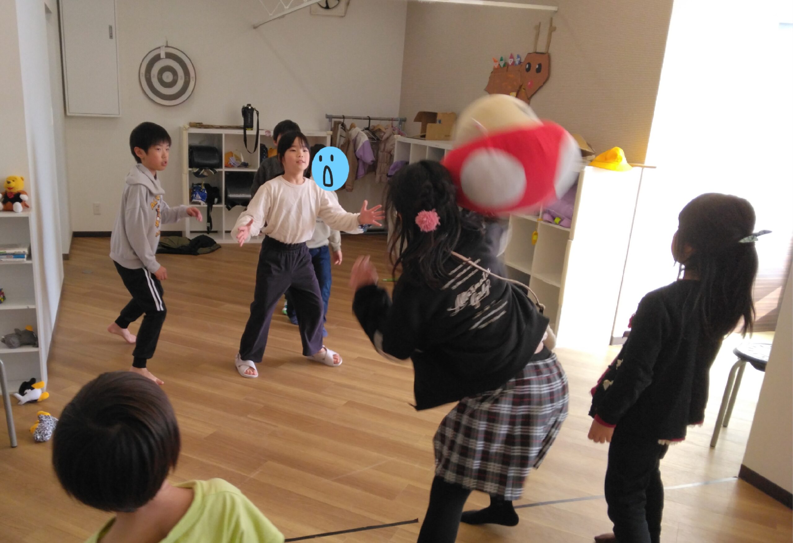 イングリッシュタイムの後は、マリオのぬいぐるみでドッジボールをしたり、