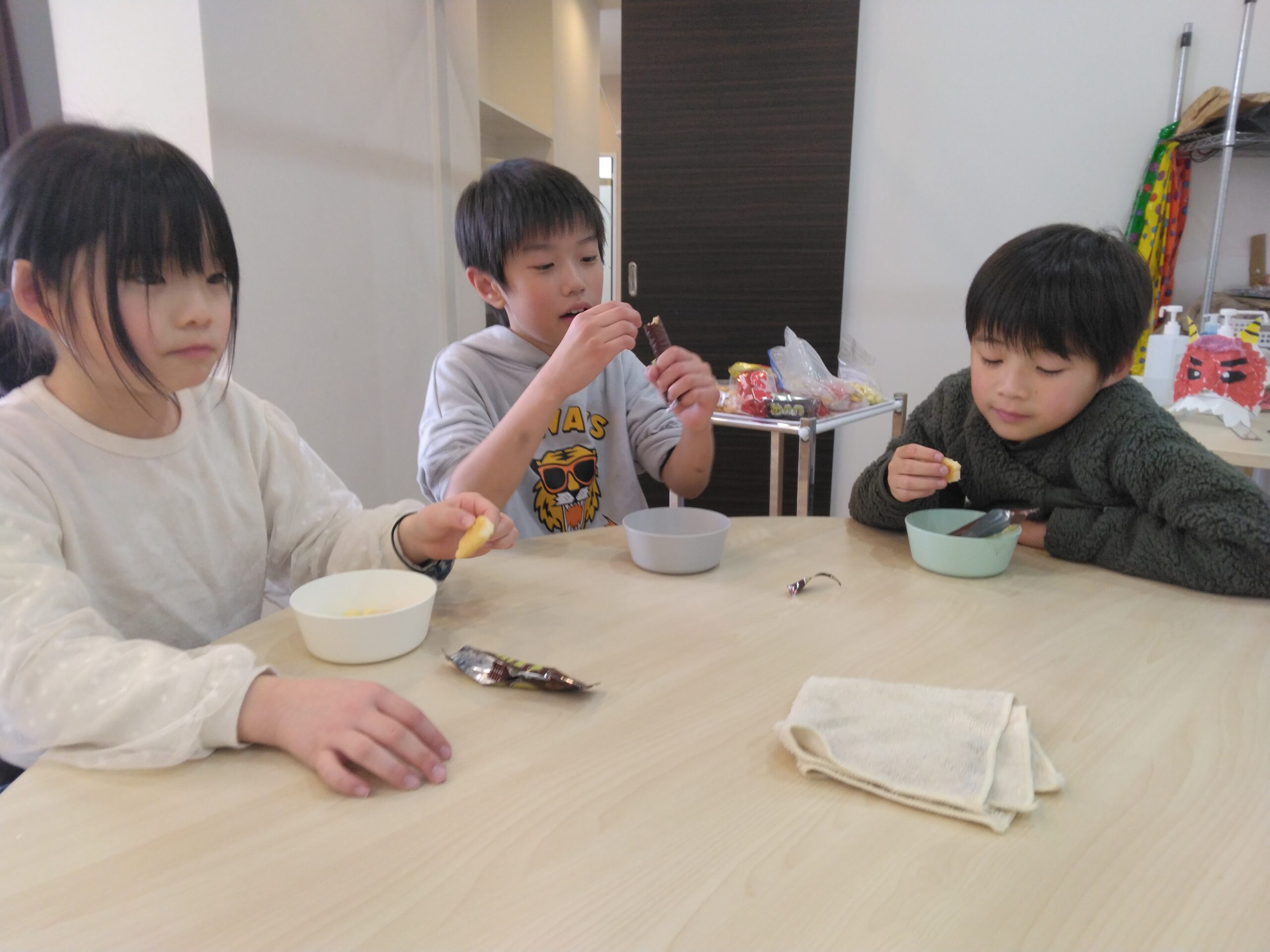 三年生が帰ったあとは、みんなでおやつタイムです!