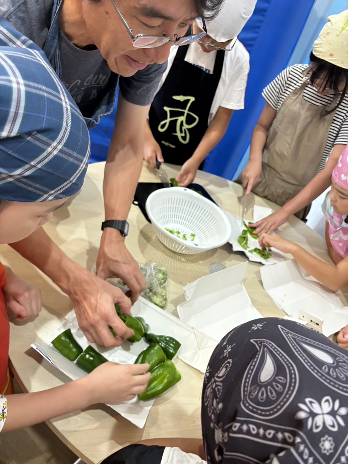 ピーマン🫑の種を取ったり、切ったり、キャベツもきざみましたよ。