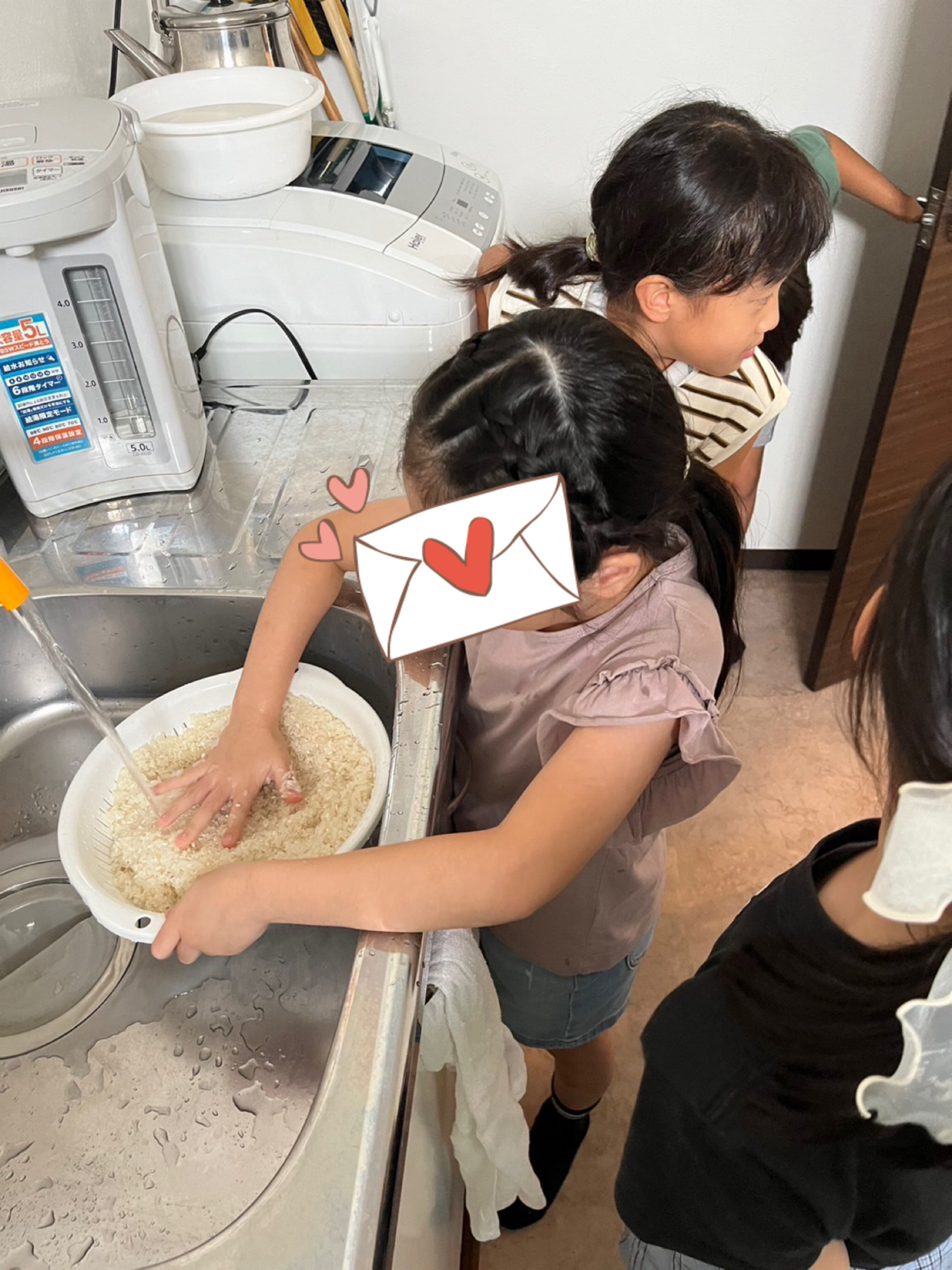 子ども達は調理チーム、テーブル拭きチーム、お皿洗いチームと分かれ、それぞれの持ち場を頑張ります。