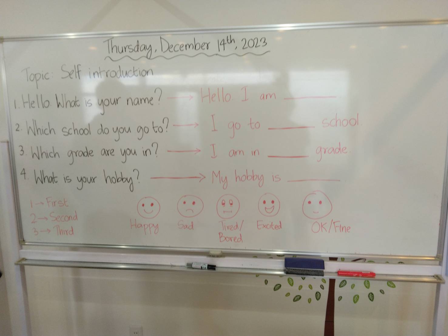 今日のイングリッシュタイムはSelf introductionを教えてもらいましたよ!