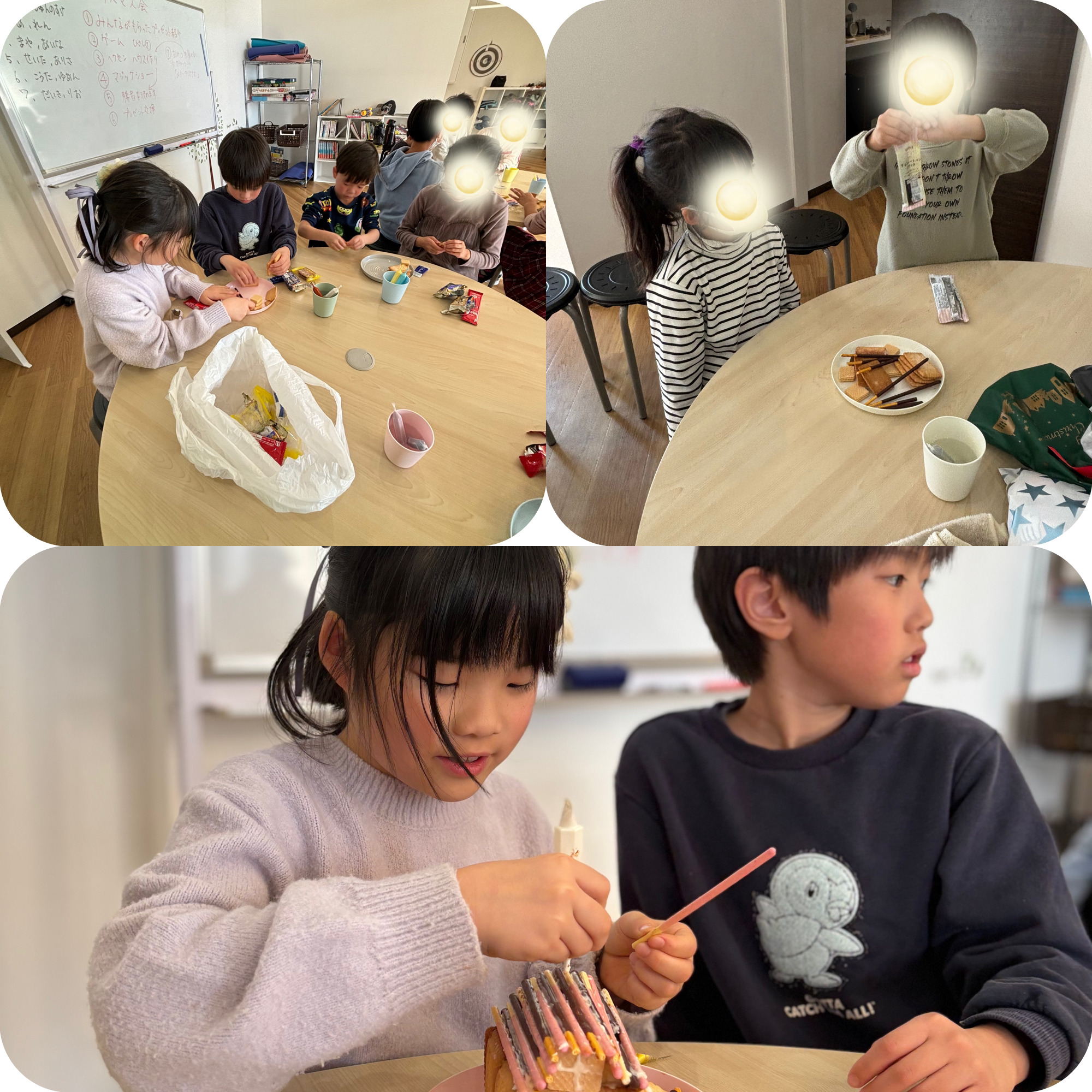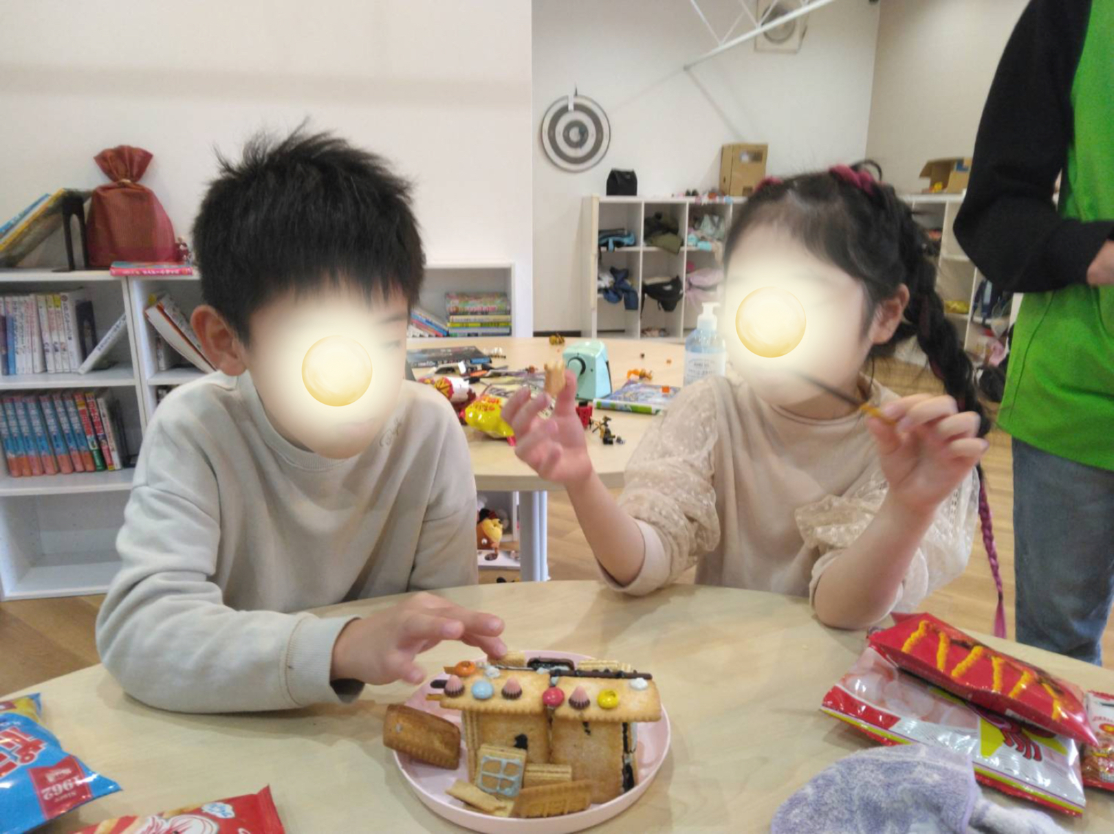 可愛いへクセンハウスが出来上がり、満足な子どもたちでした。