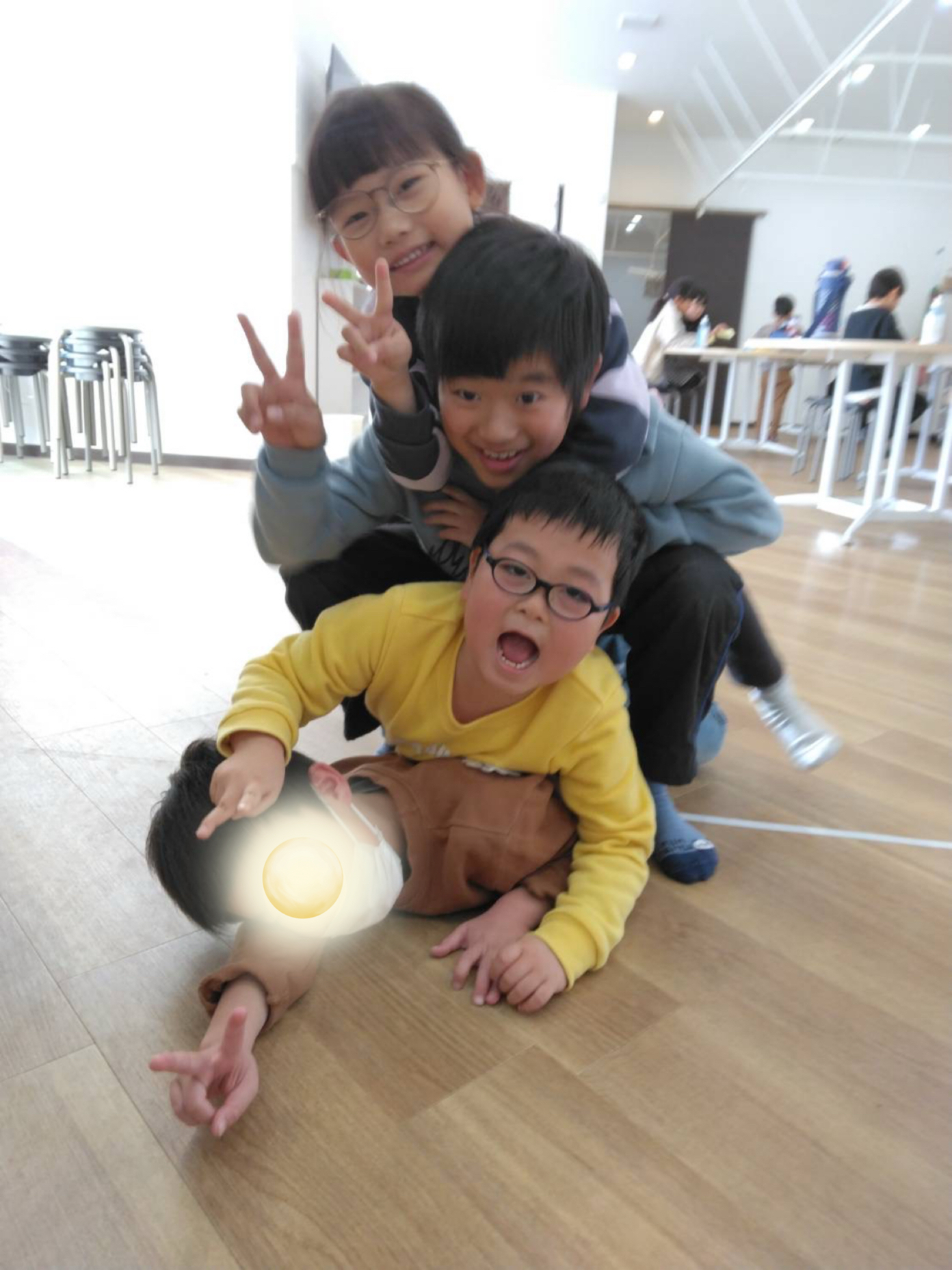 あらあら、可愛いタワーが出来ています😳みんなの表情から楽しんでいるのが伝わりますね☺️