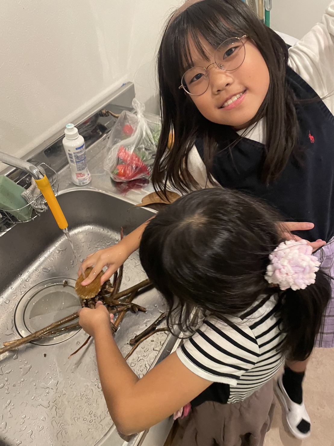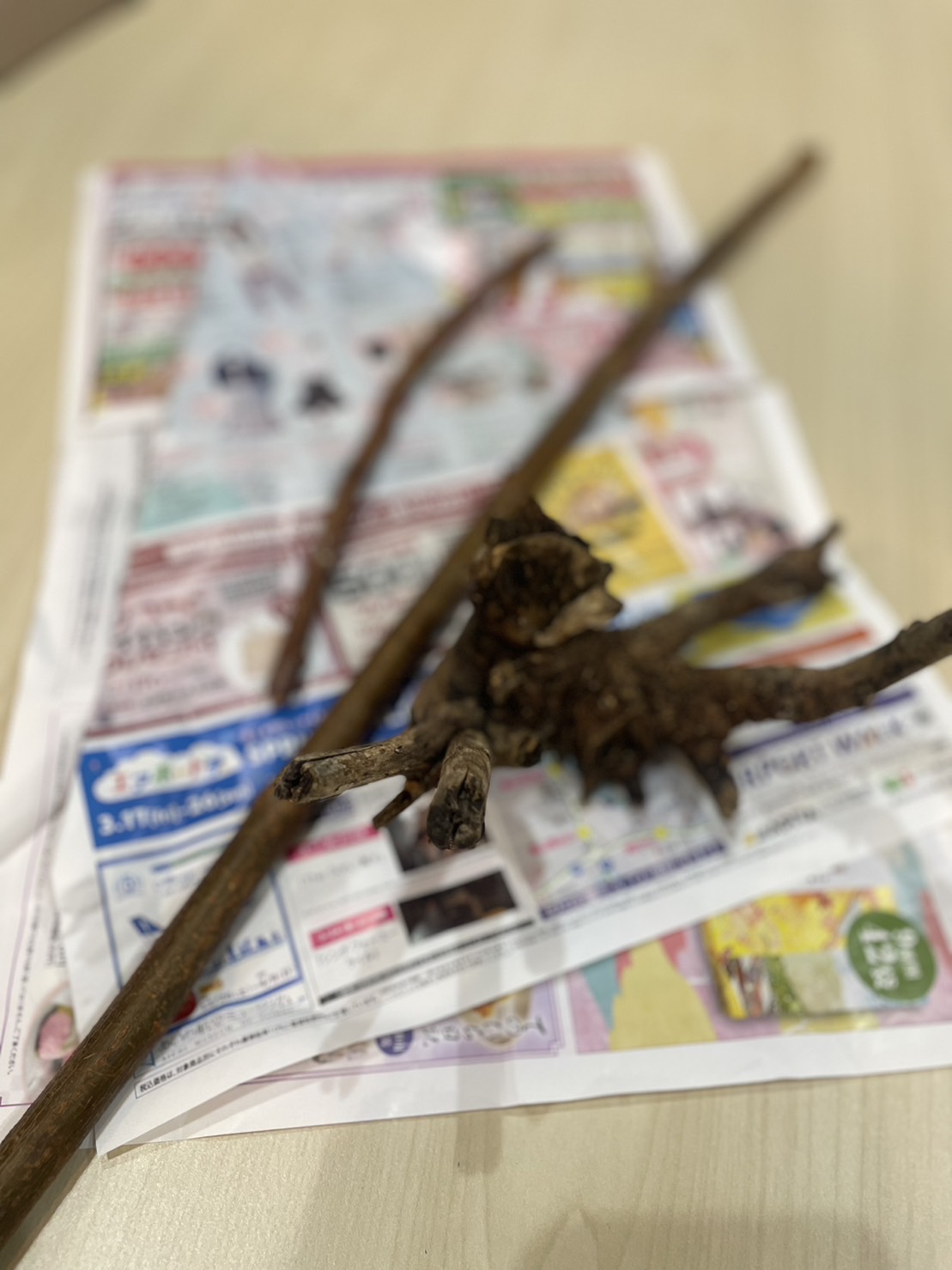 公園から帰ったあとに拾ってきた木をきれいに洗って乾かします。