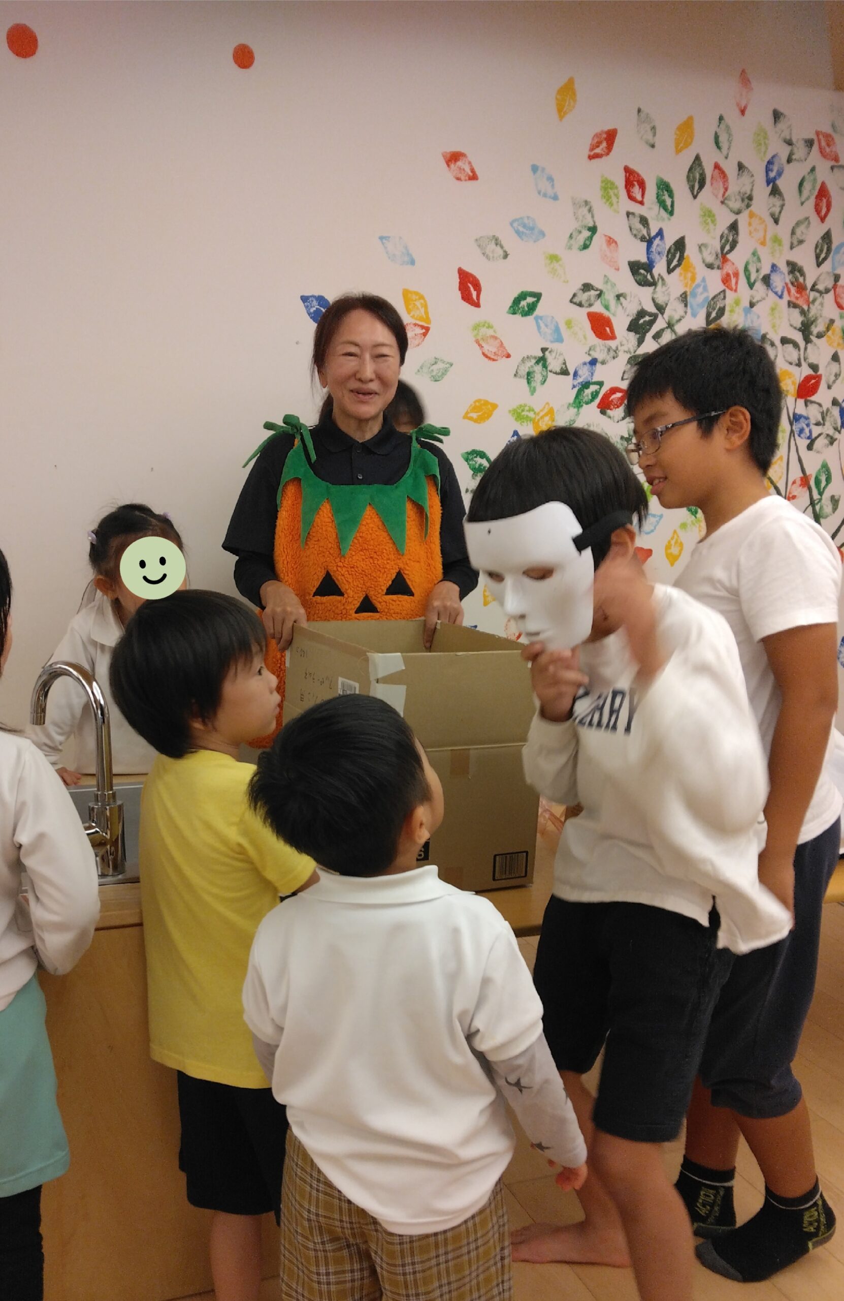 仮装をした後は、チャイルドケア勝川園やナーサリースクール勝川の子供たちにお菓子を持って訪ねに行きました!