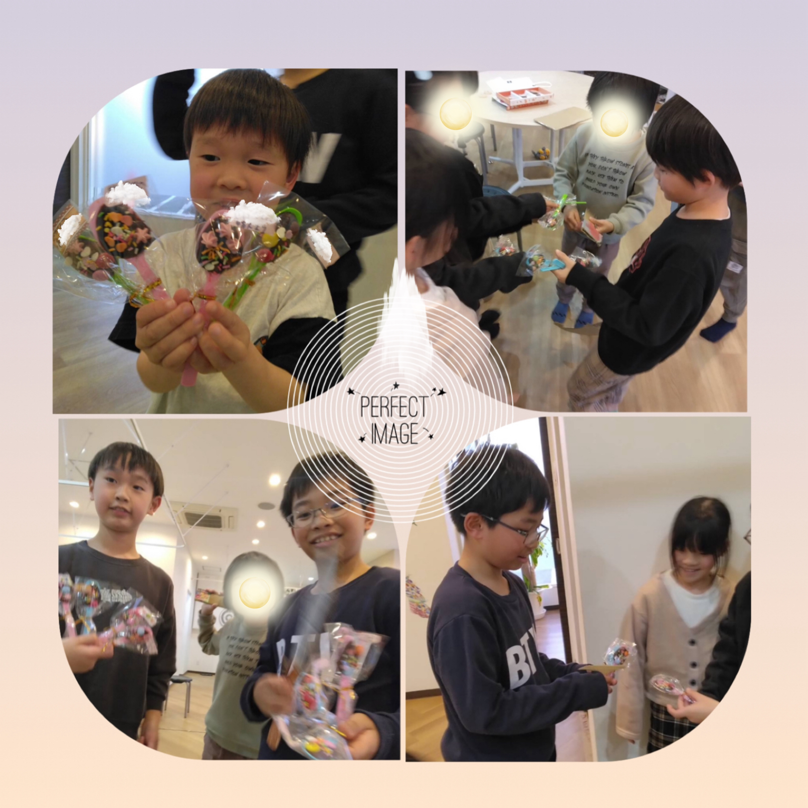 可愛いチョコを持って、男の子達にさっそくプレゼントです!