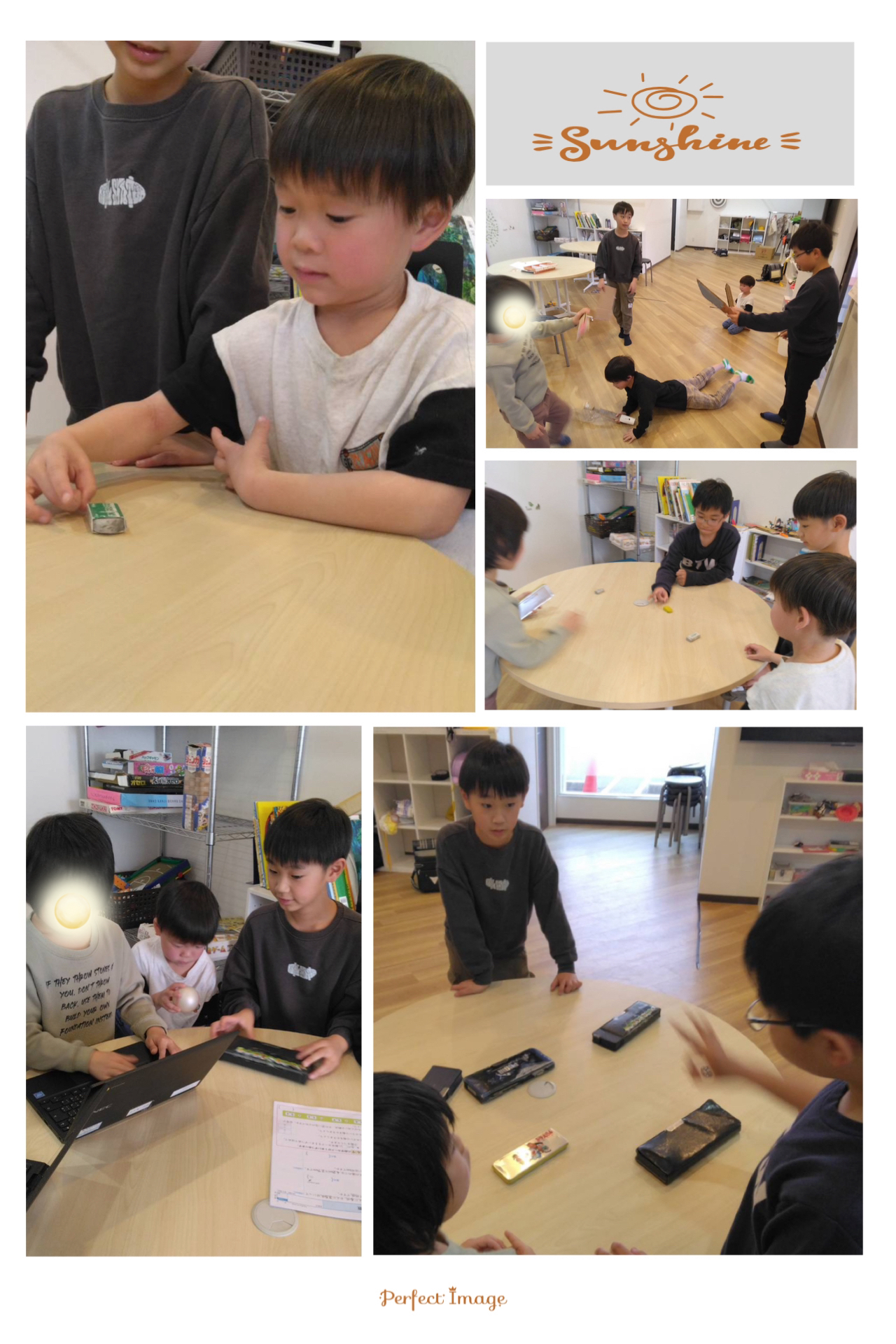 女の子達がチョコを作っている間、男の子達はパソコンで宿題をしたり、消しゴム落としや昨日作った武器で遊んでいましたよ!