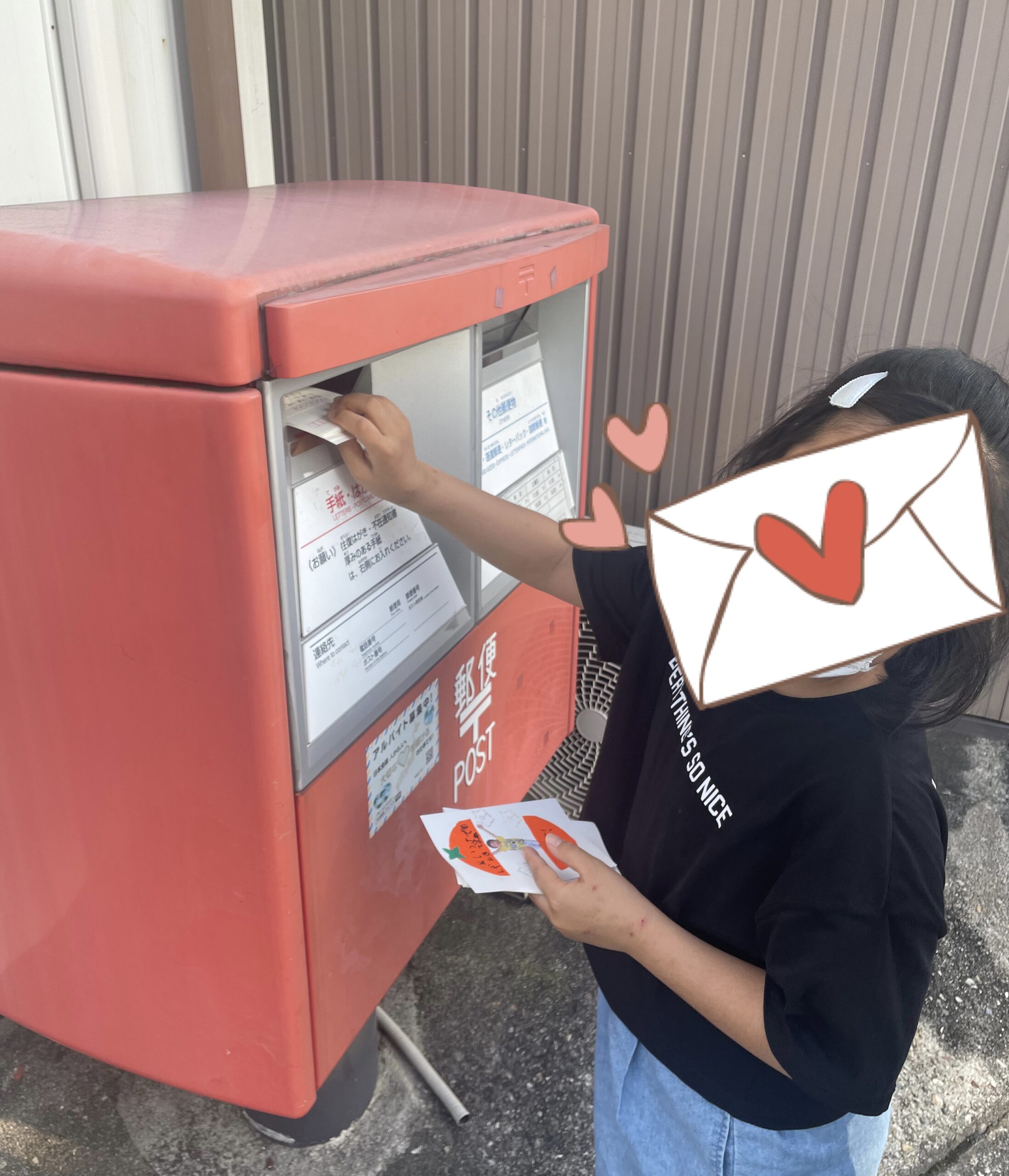 宿題も終わり自由タイムに入ってからは、代表者2名でハガキをポストインしに行ってきました!
