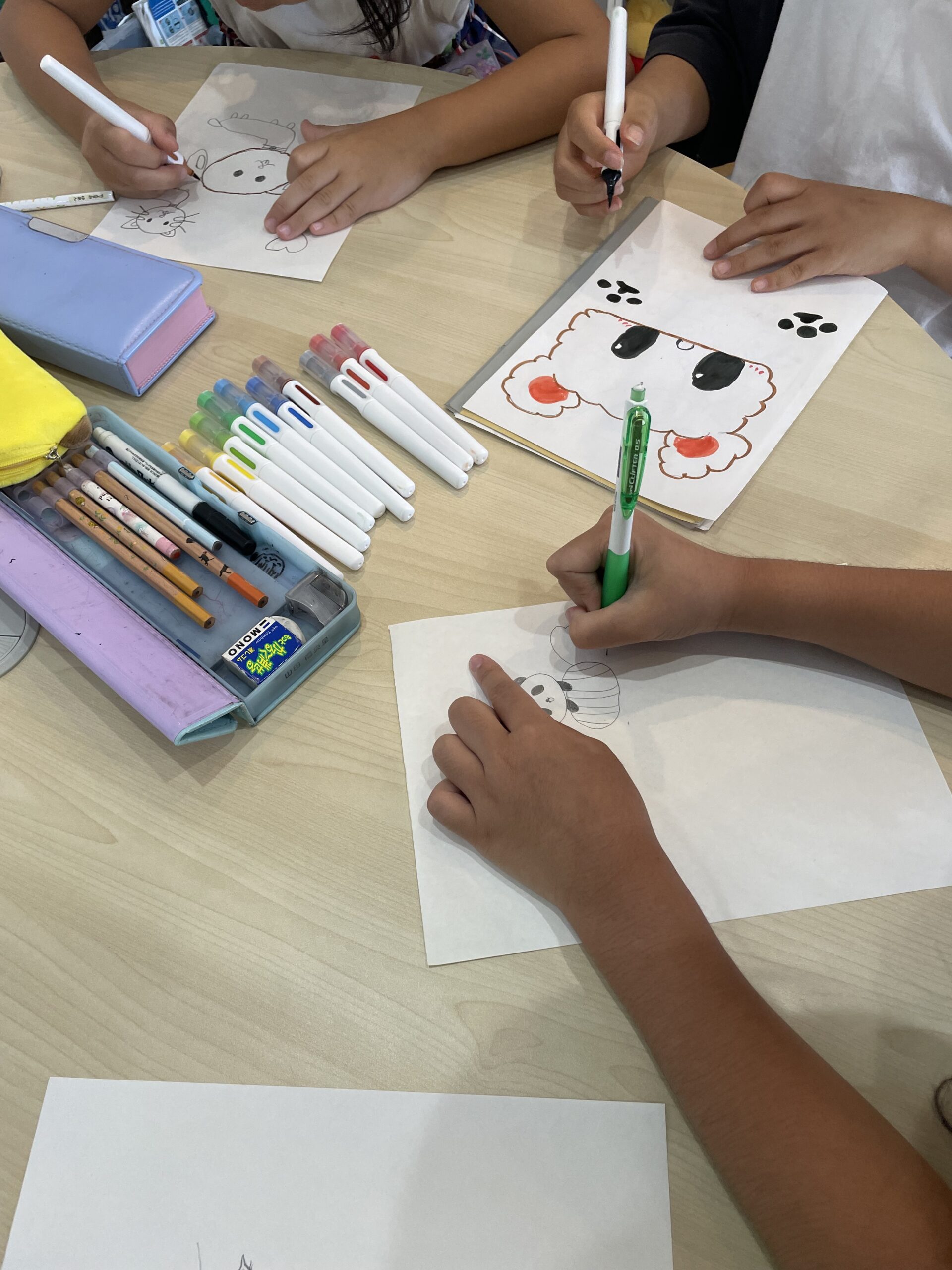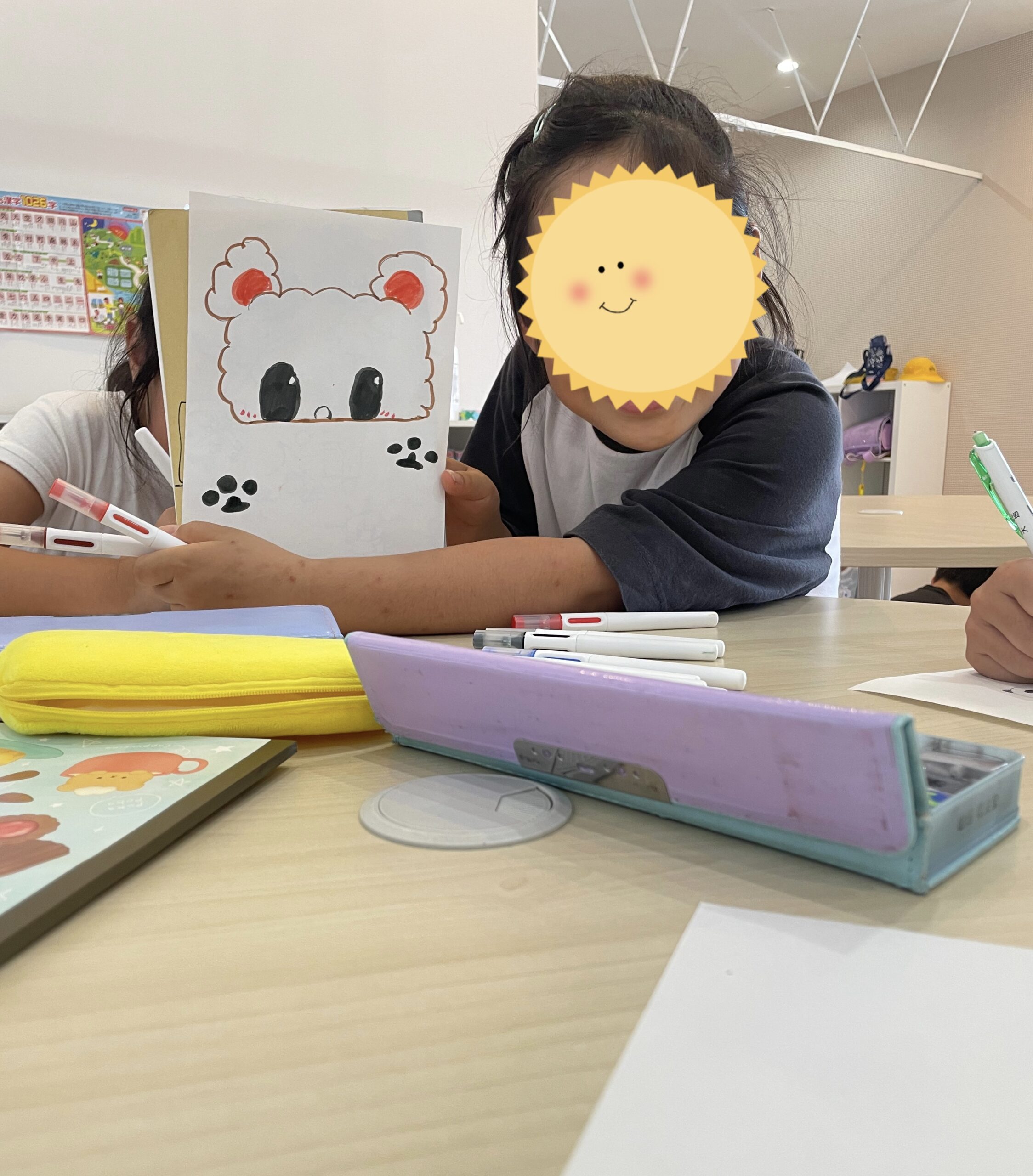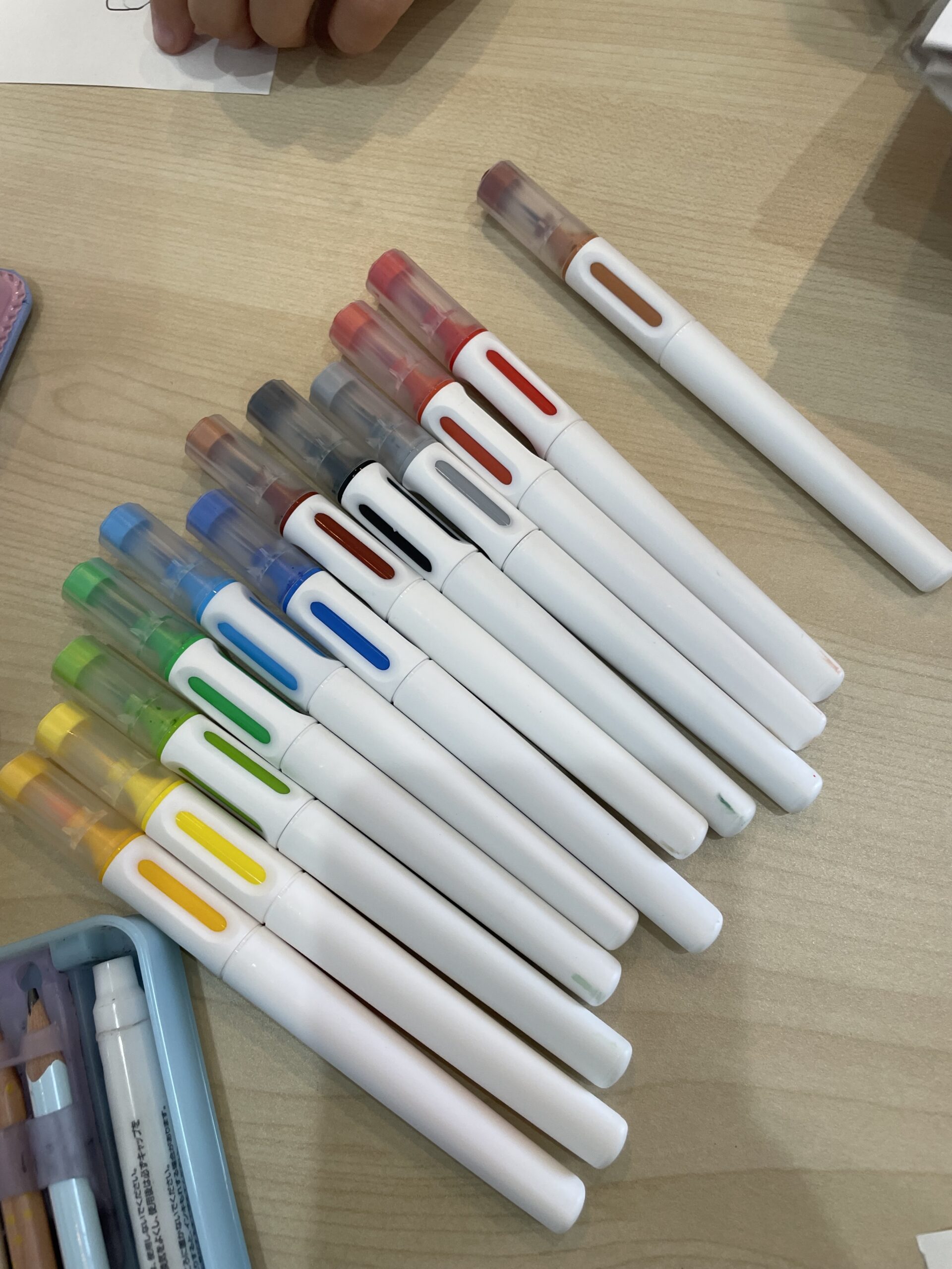 一方女の子たちは最近カラーの筆ペンを使ってのお絵描きにハマり中です。