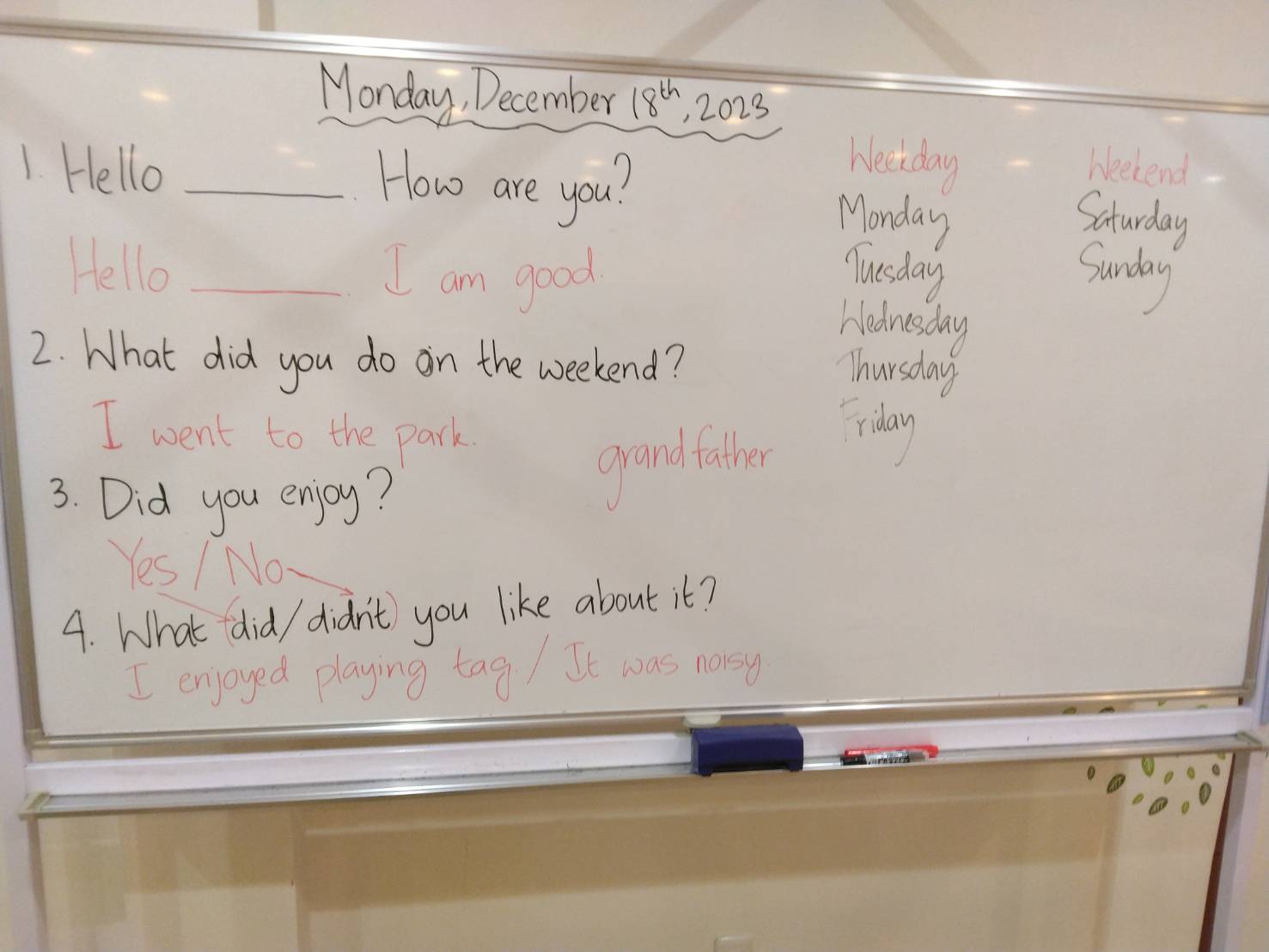 そして本日のEnglish Timeは週末の出来事を英語で話してみましたよ。