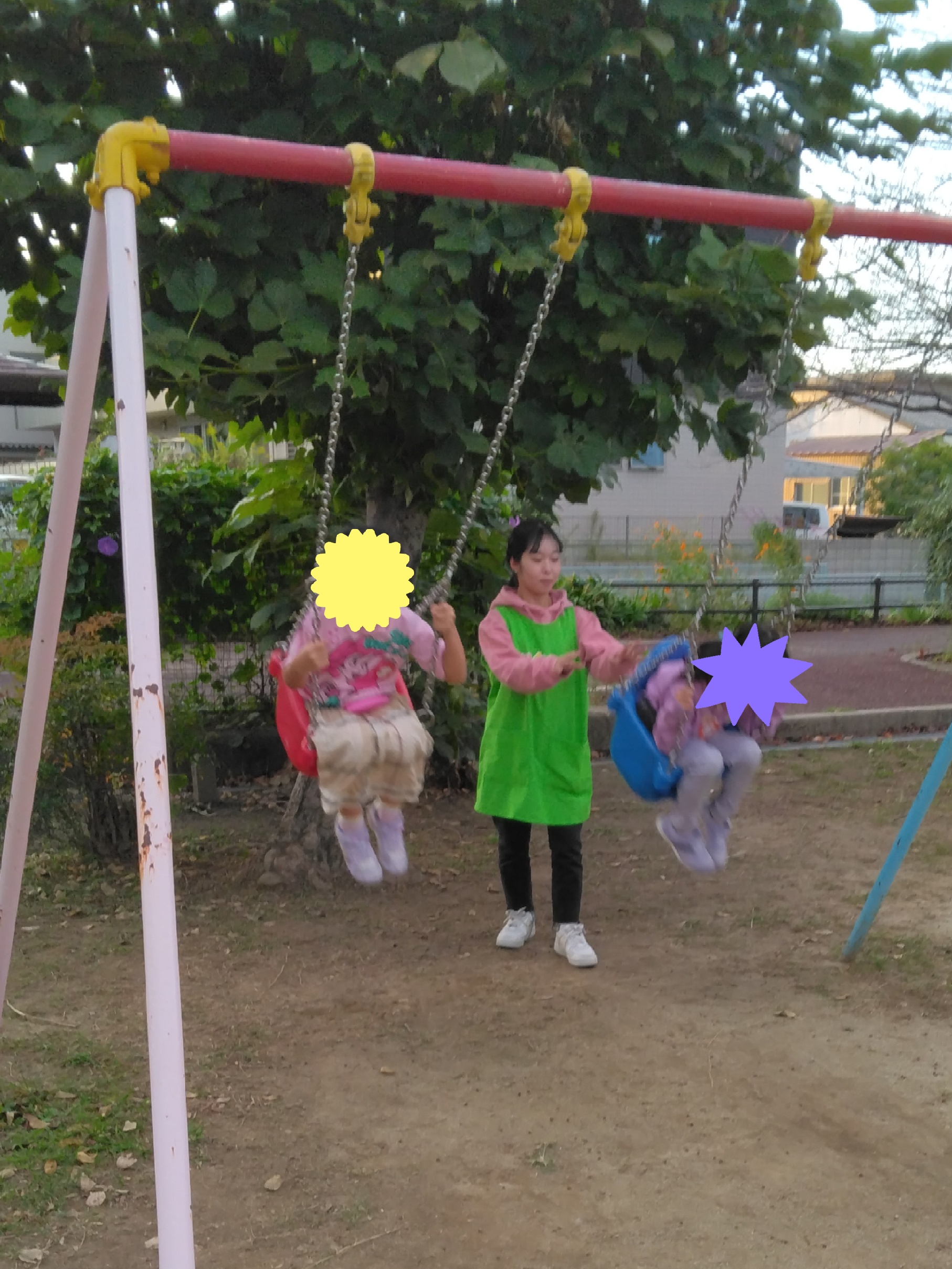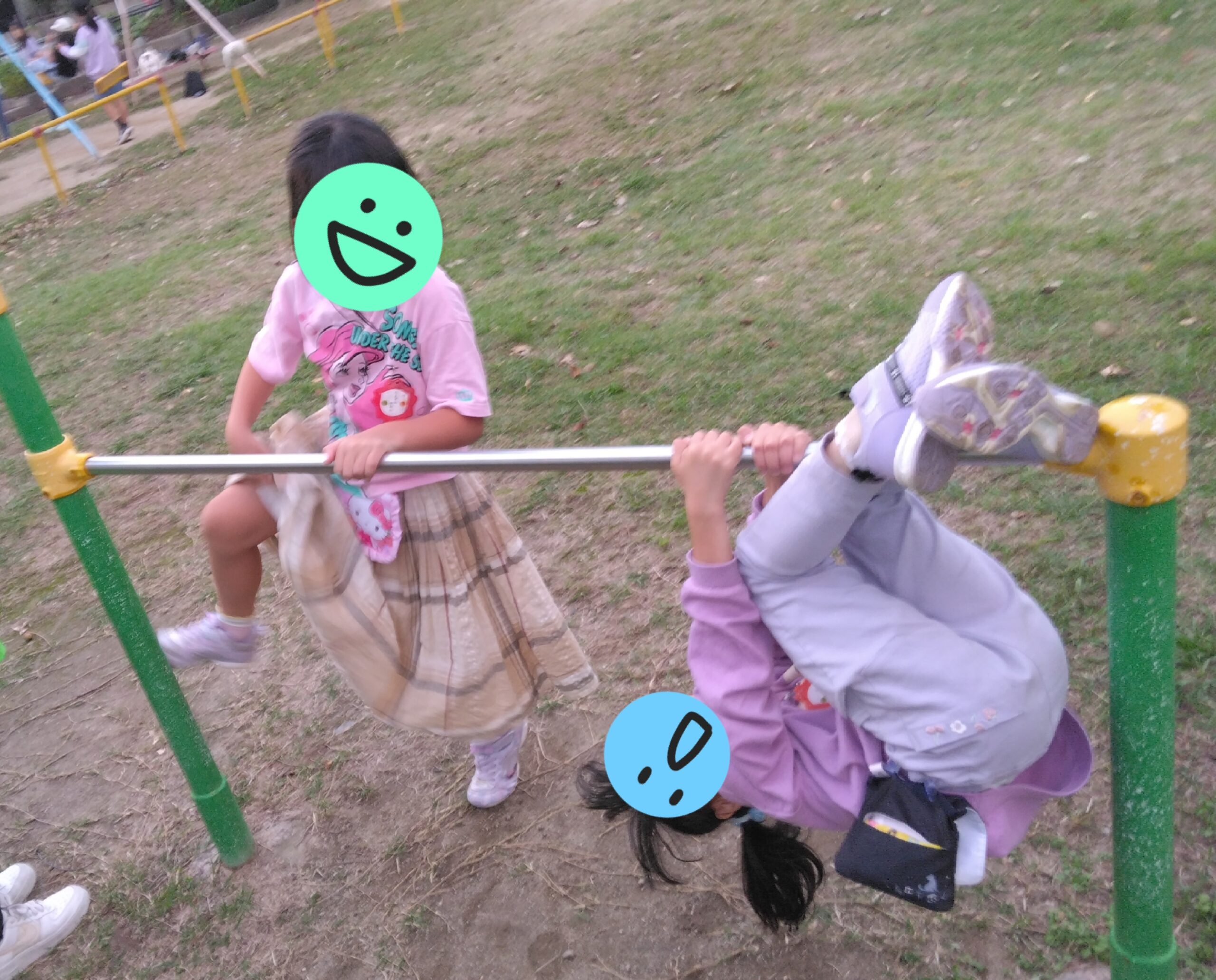 女の子はブランコをしたり、鉄棒遊びです!
