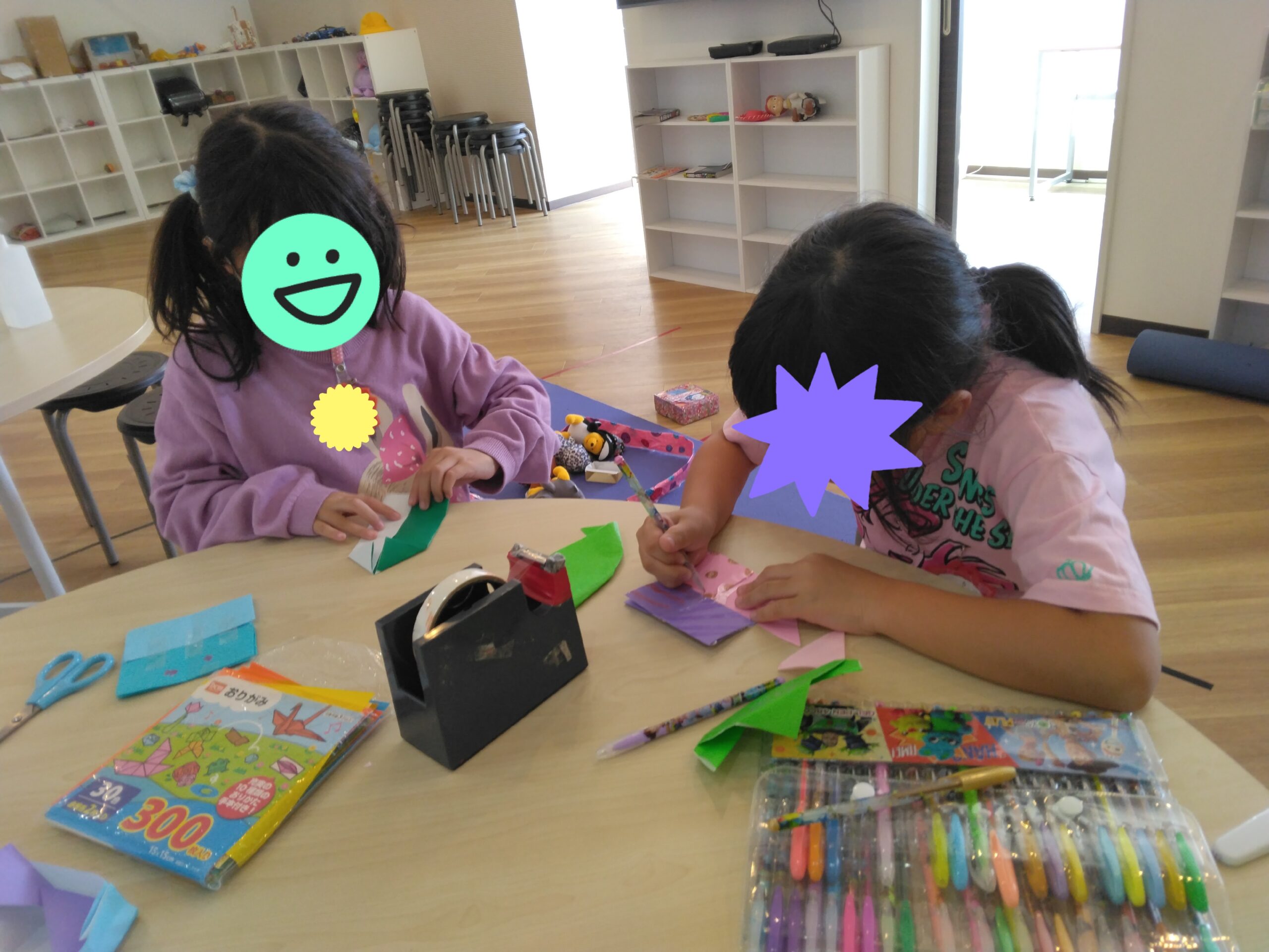女の子たちは折り紙工作に夢中でした。