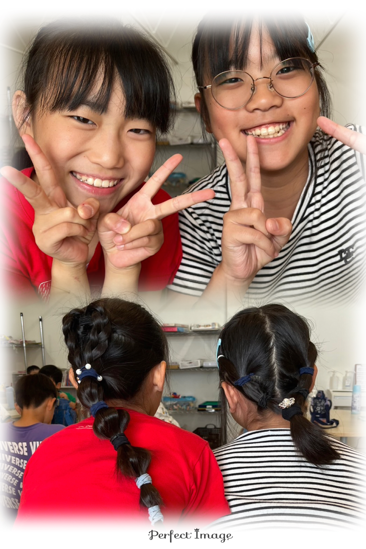 こちらの2人は先生に可愛らしく髪を編んで貰ってニッコリ☺️
