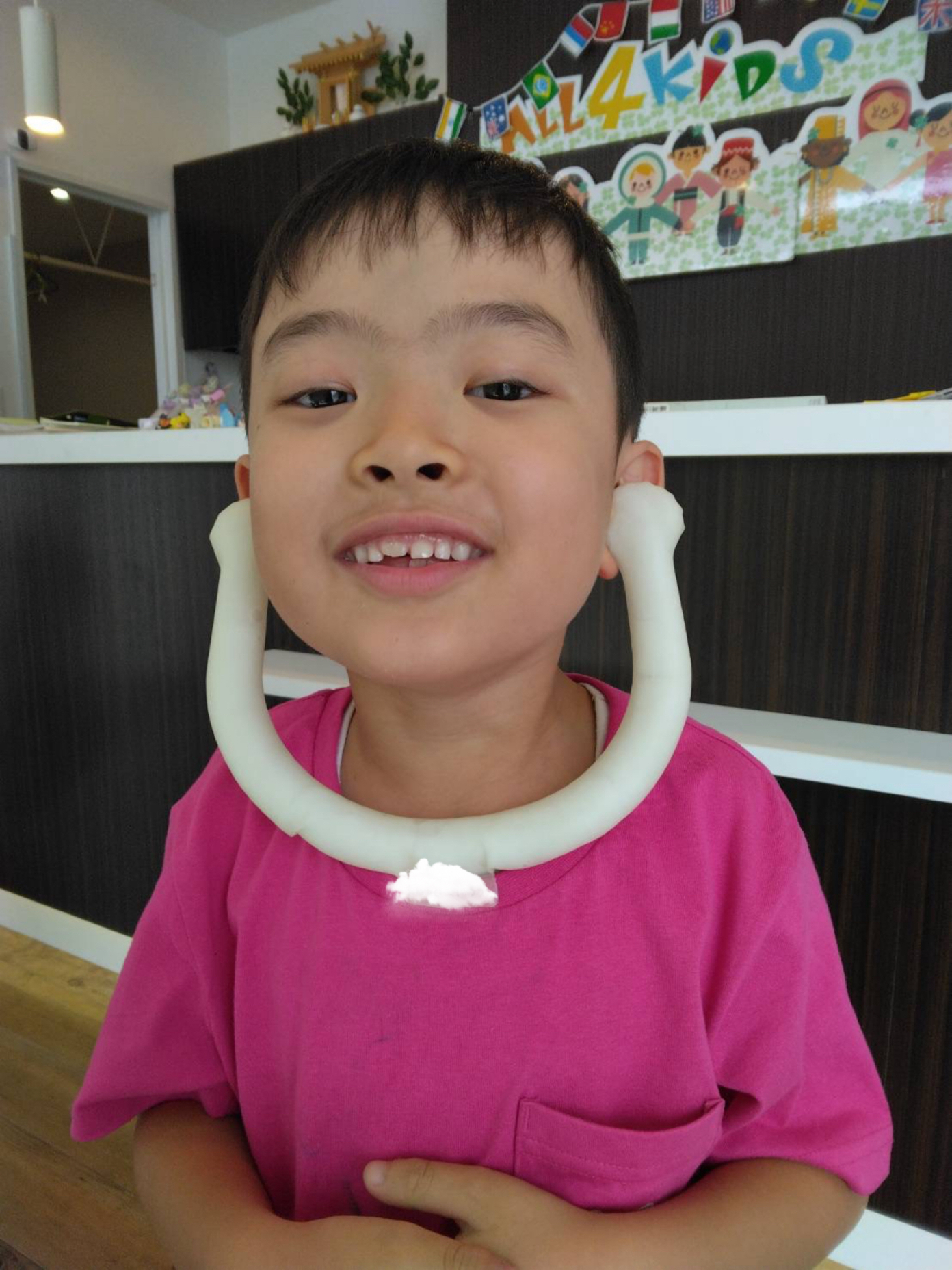 と思ったら、こちらでは別のお友達が面白い格好をしていたので何をしているのと聞いてみたら…