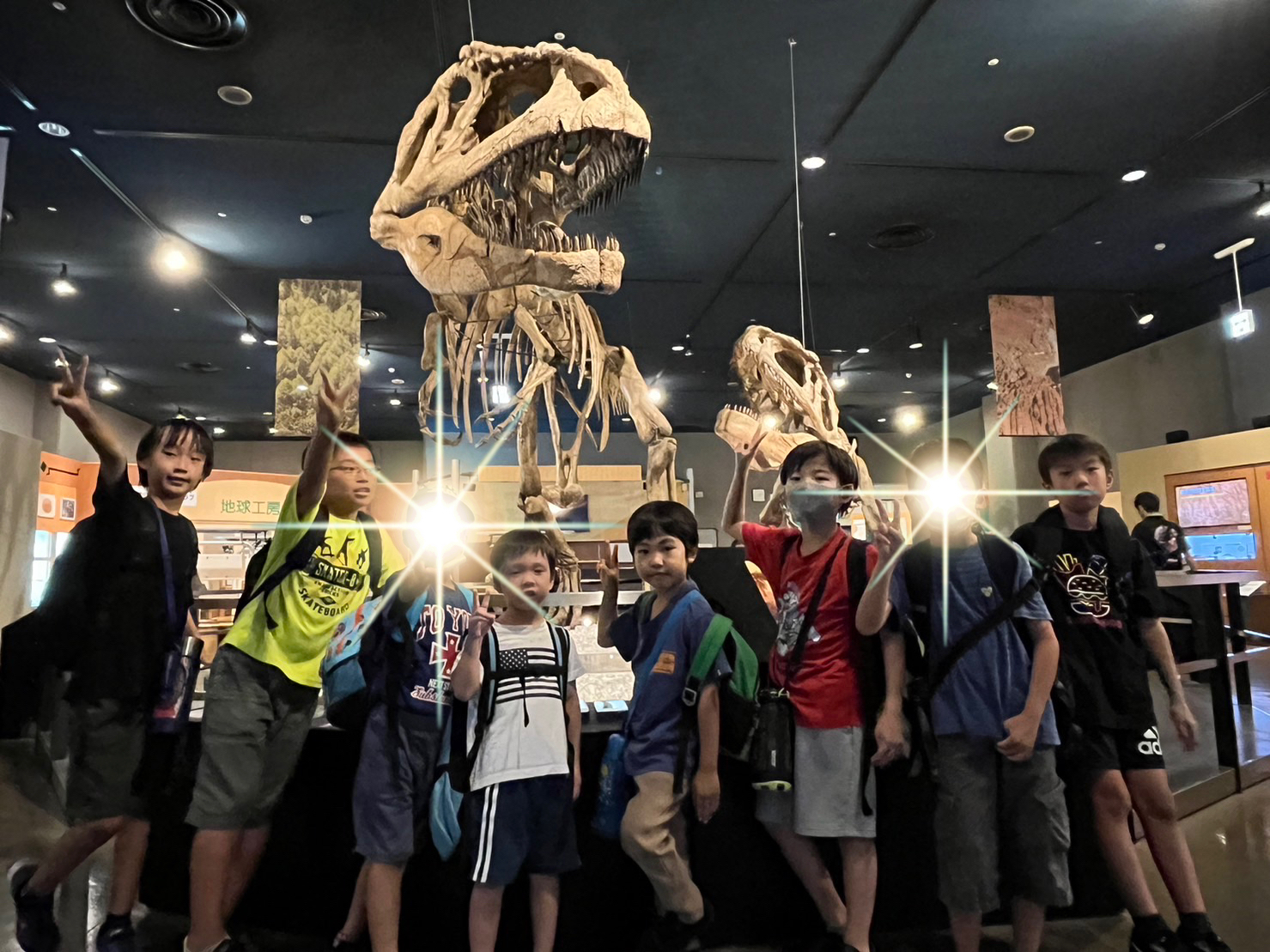 最後は恐竜の骨の前で記念撮影です!