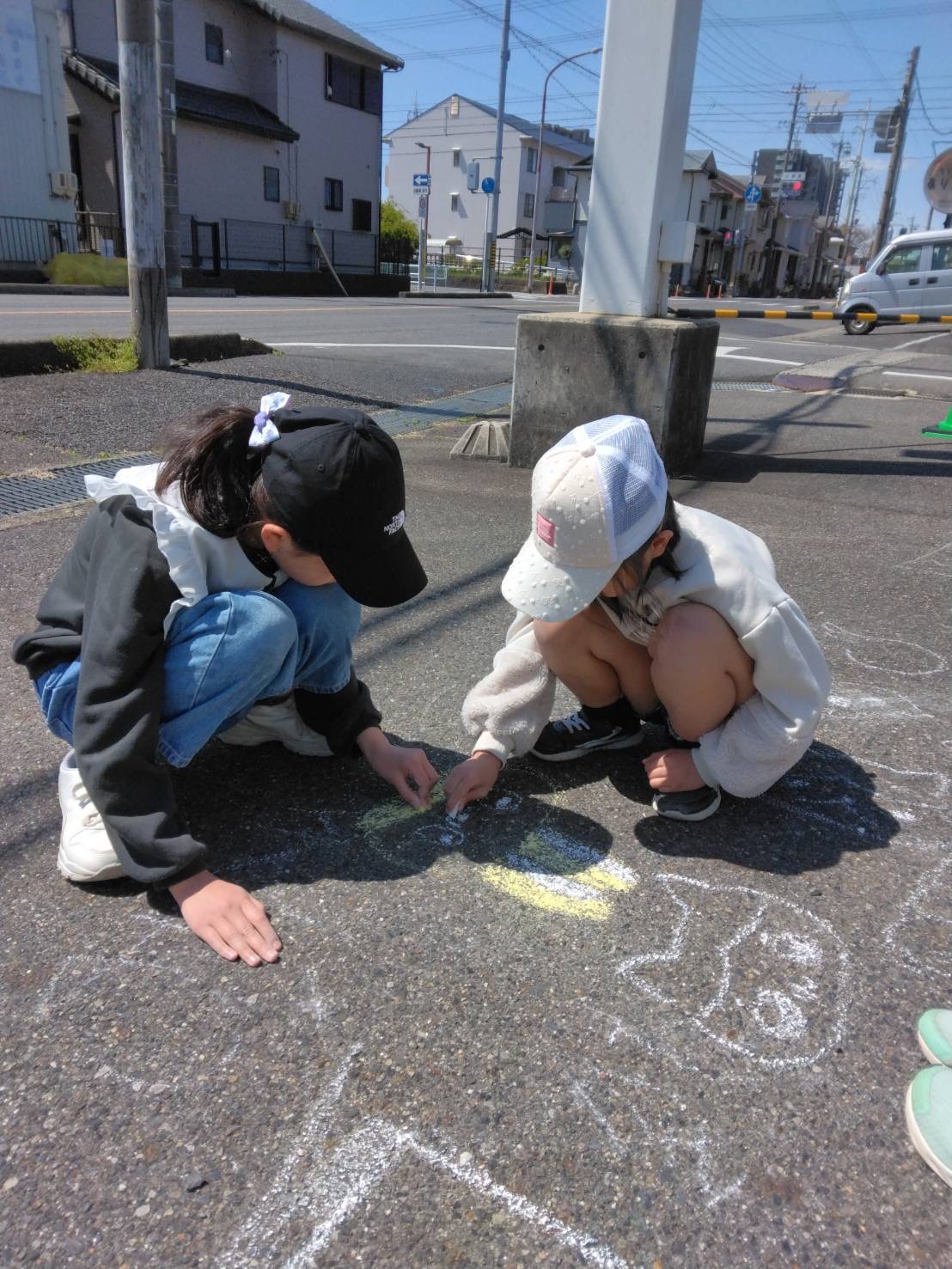 地面いっぱいに大きな絵や文字を楽しそうに書いていました😊