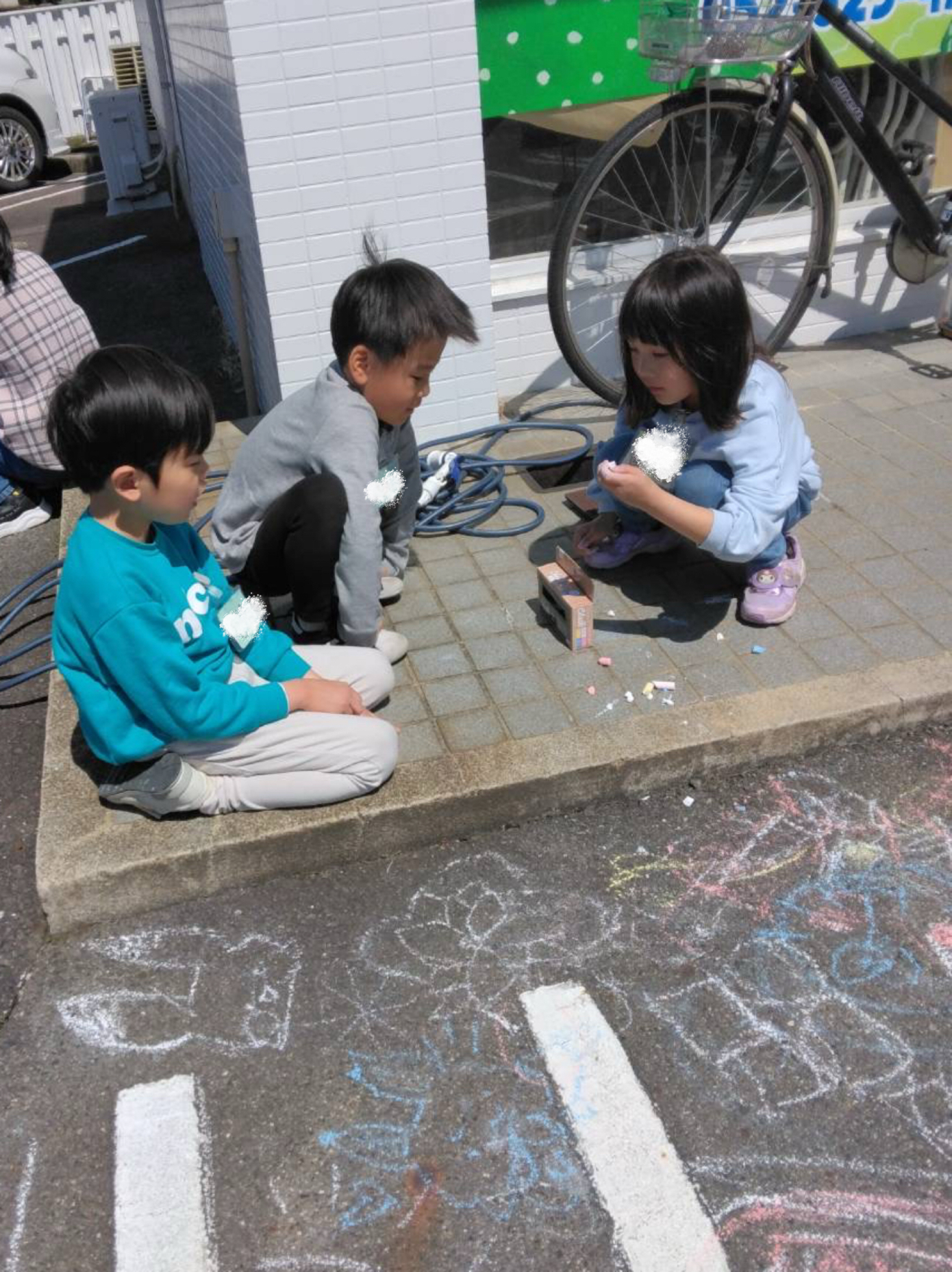 こちらはチョークで楽しくお絵描き中