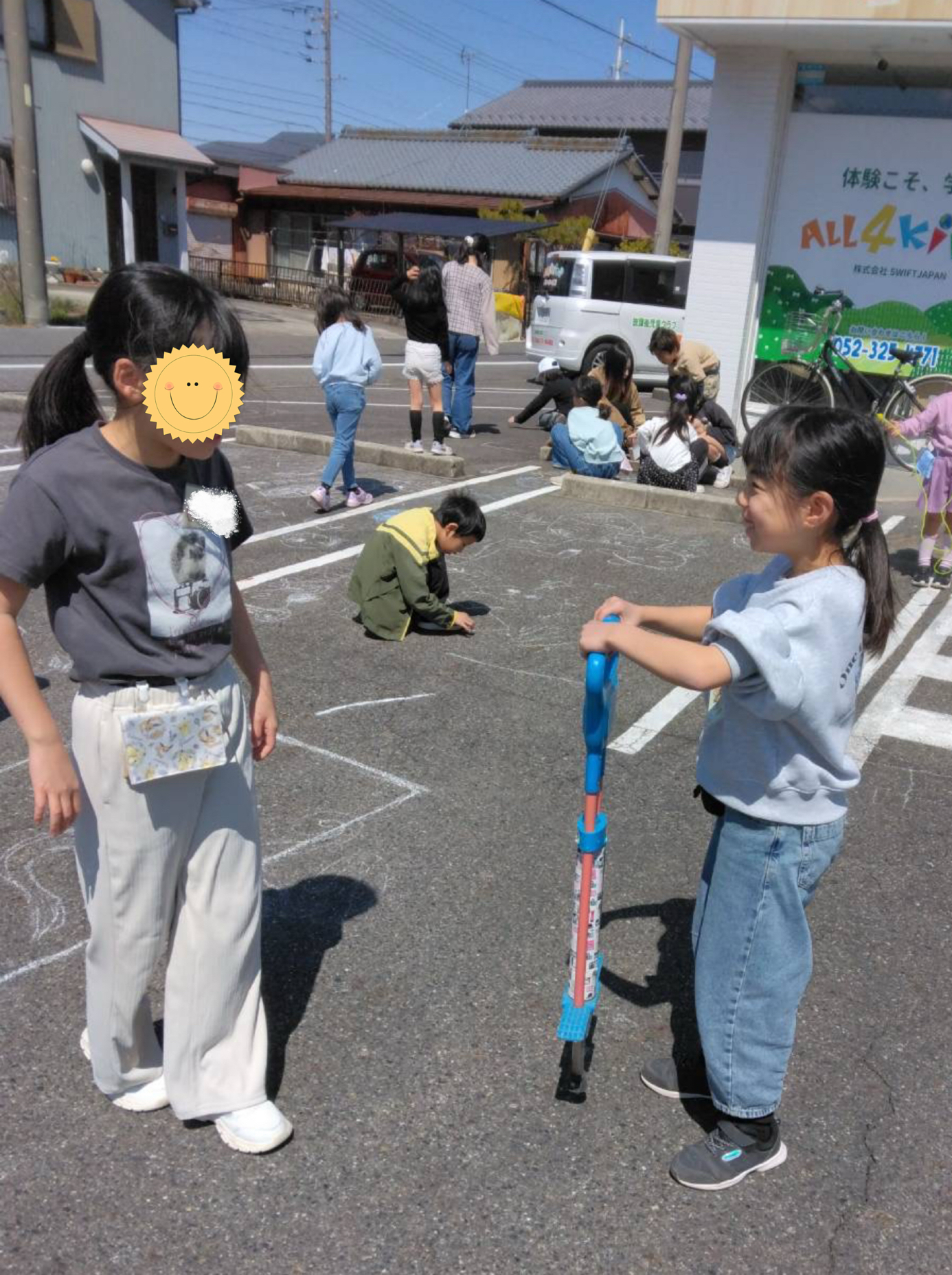 お昼ご飯までは駐車場で遊ぶことに🏃‍➡️