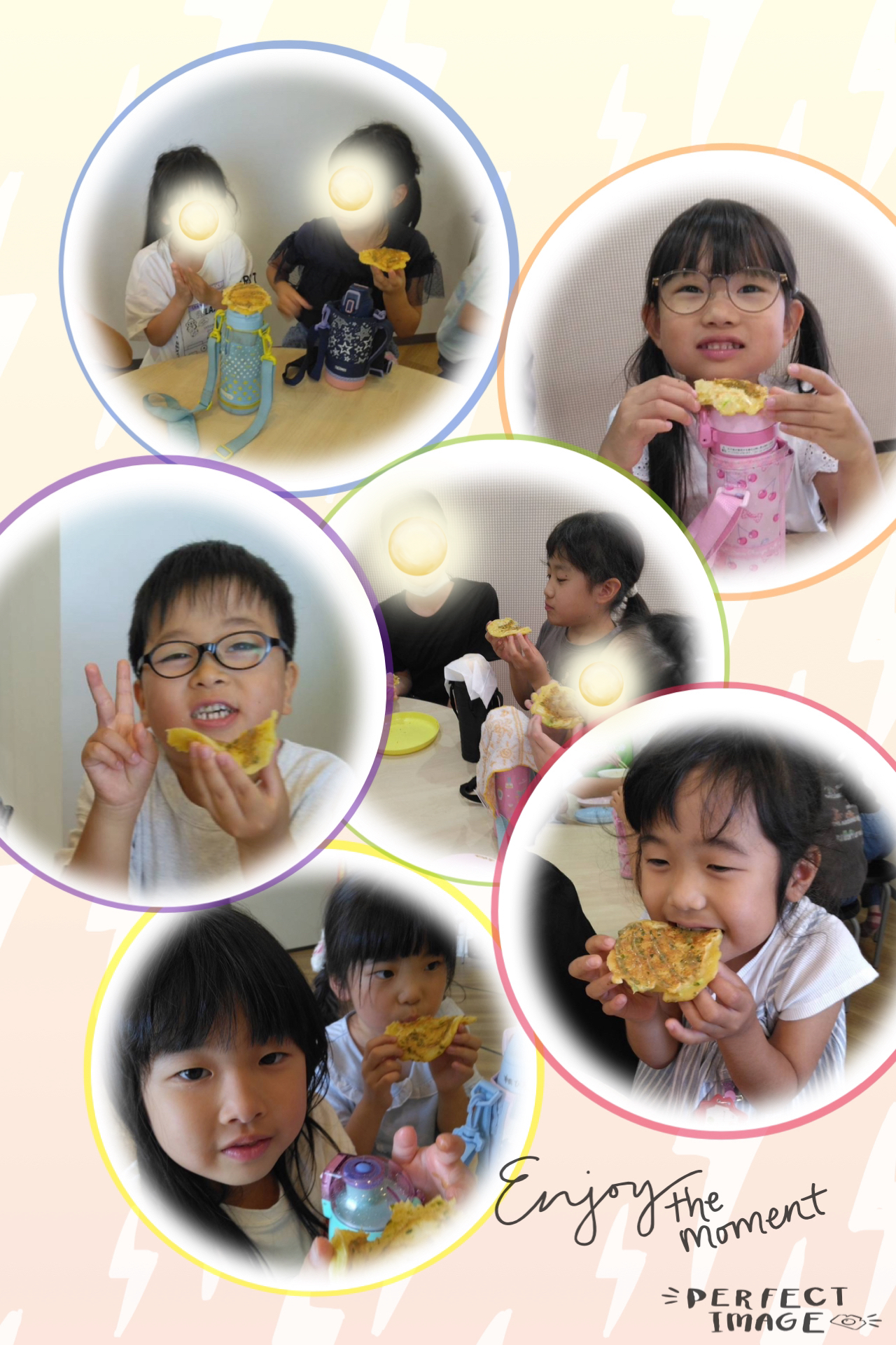 こんがりと美味しそうにお好み焼きが焼けたら、みんなで「いただきま〜す!」😋