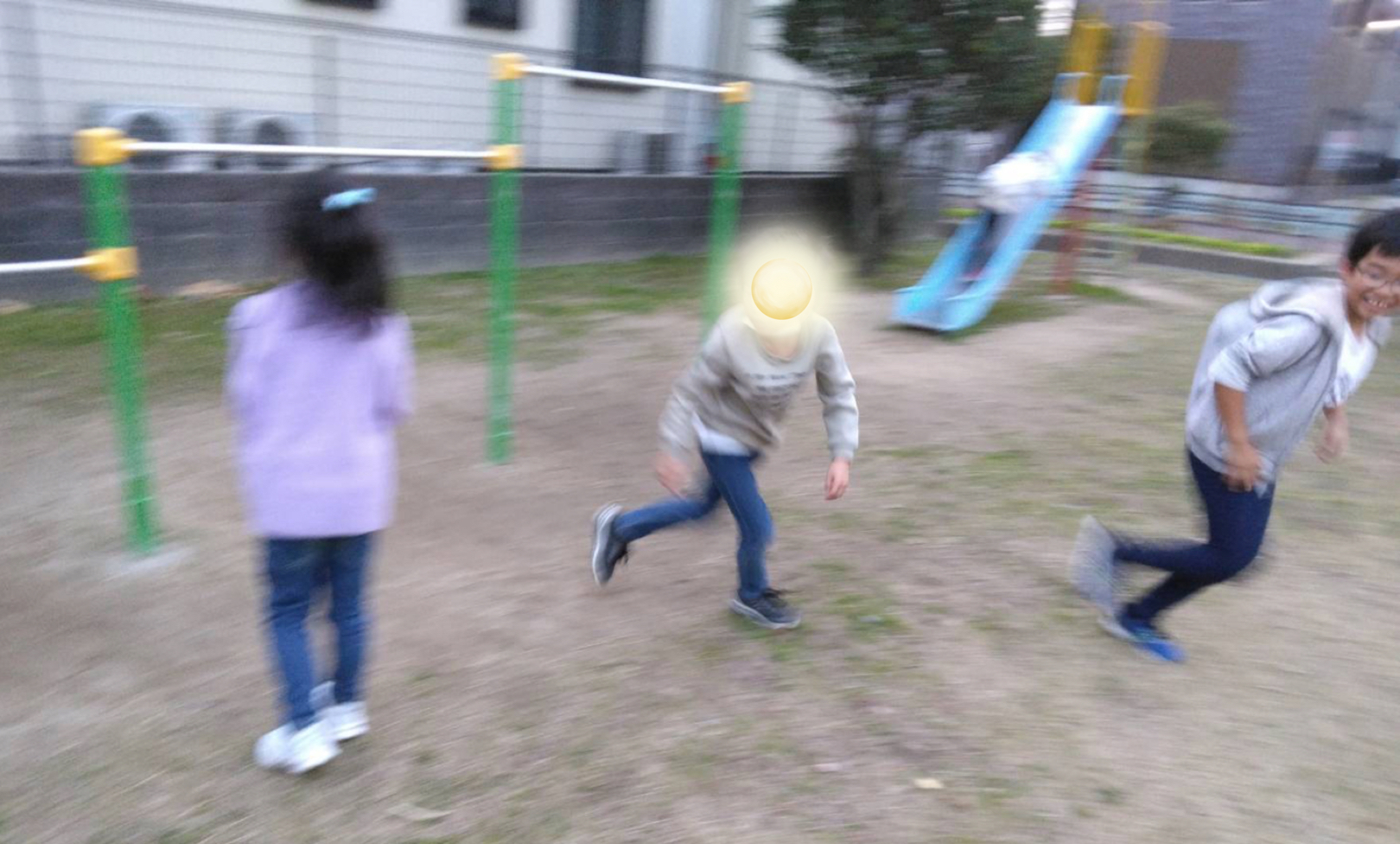 おやつの後は、腹ごなしに近くの公園で鬼ごっこをして遊びました!