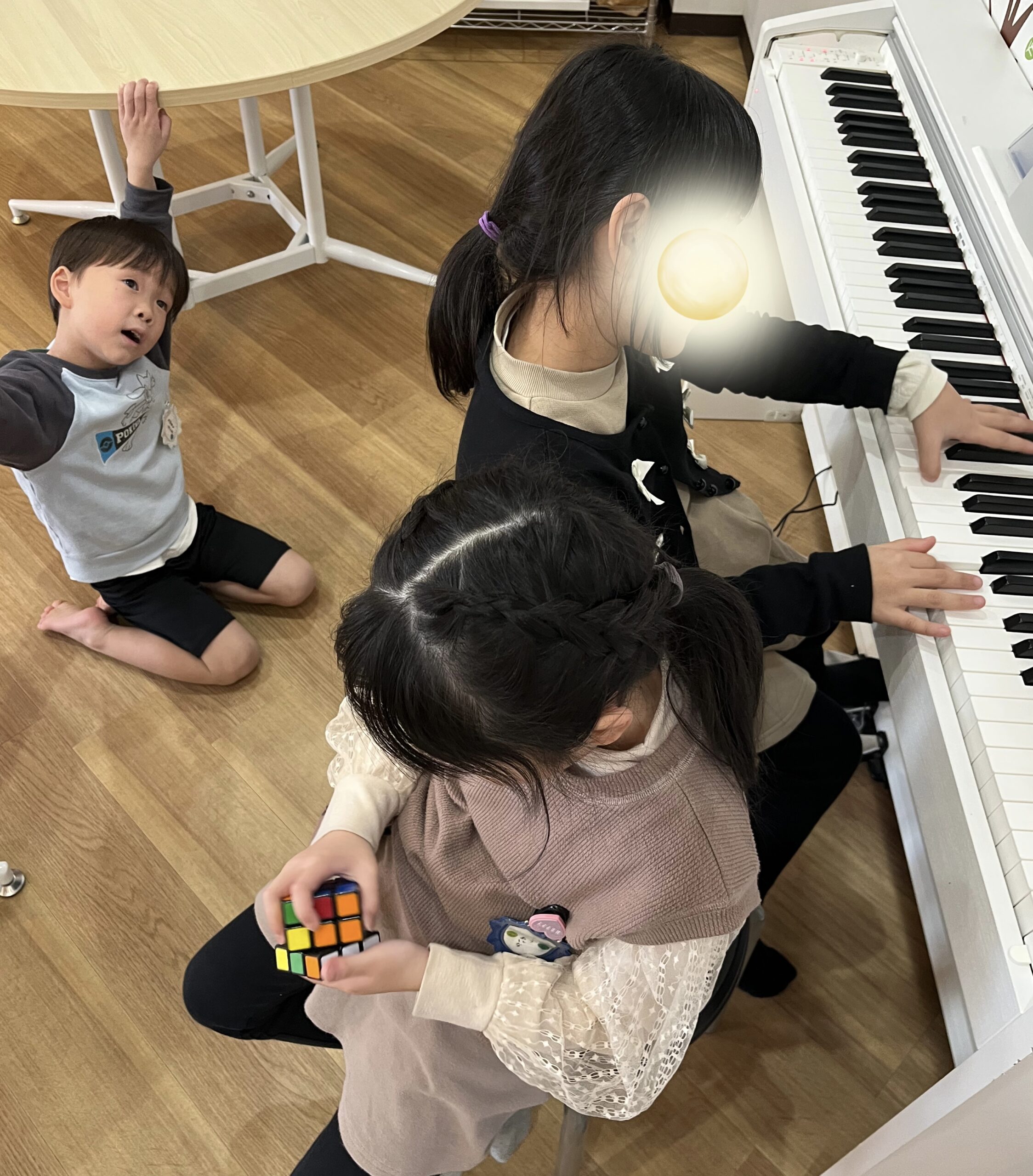 1年生はピアノを弾いたり、バレエ??の練習のような遊びをしていました。