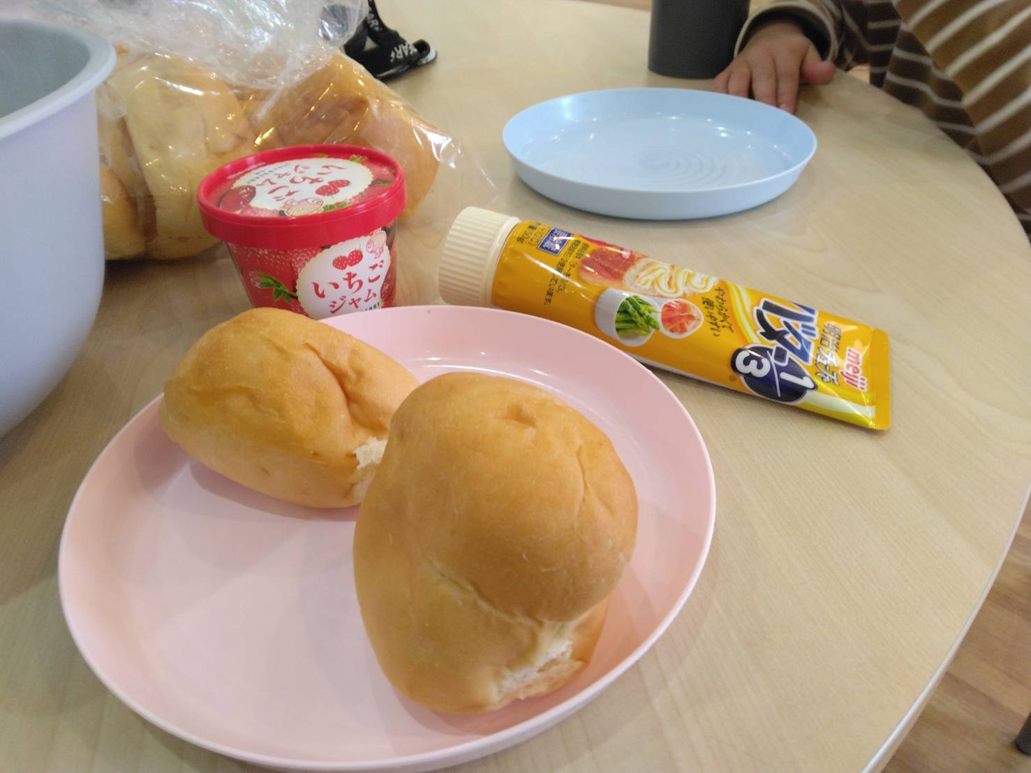 今日はパンでした。次々と口の中に入っていき、あんまりよく食べてこちらが心配になるぐらいでした。