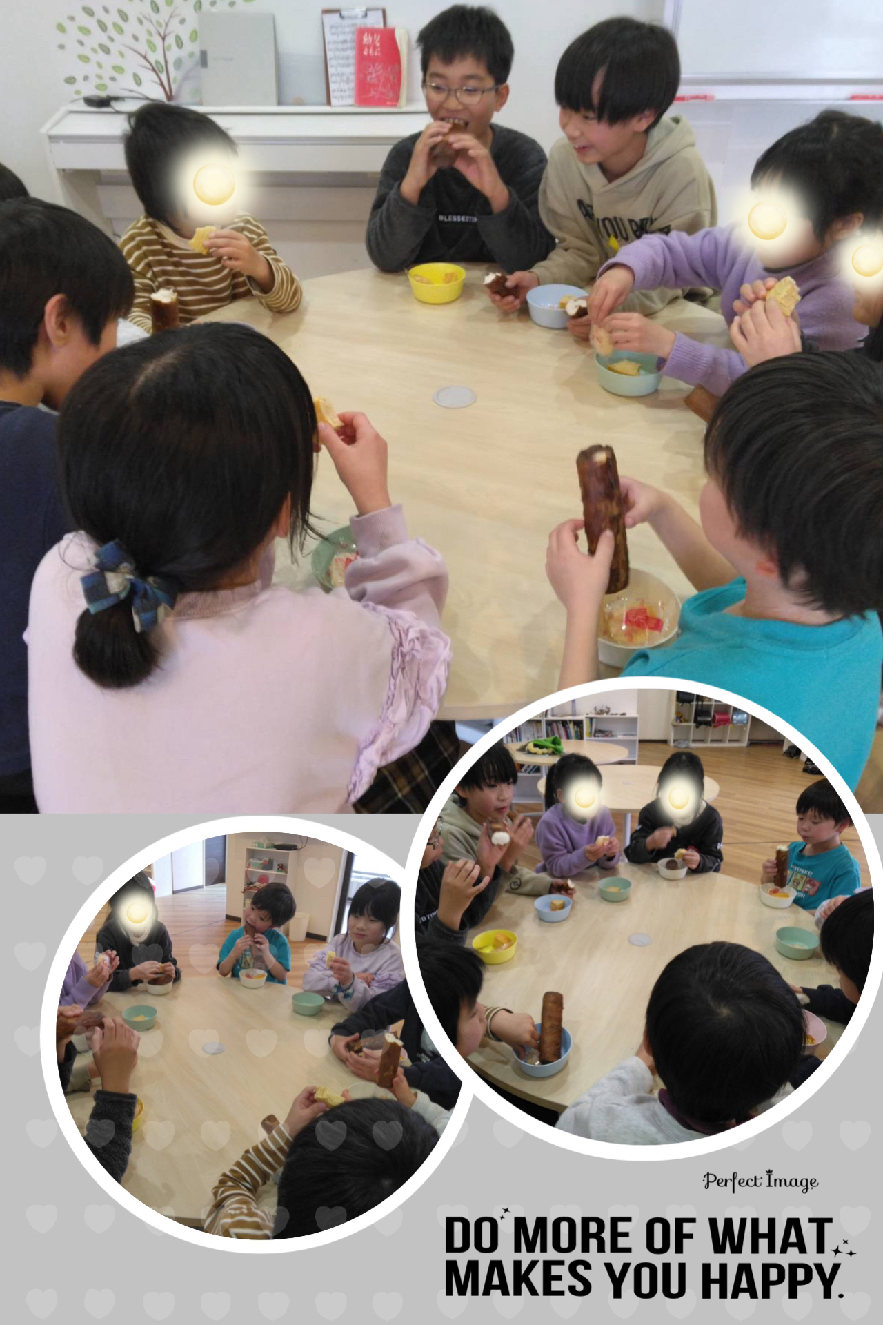 3年生が下校し、すぐにおやつタイムにしましたよ!