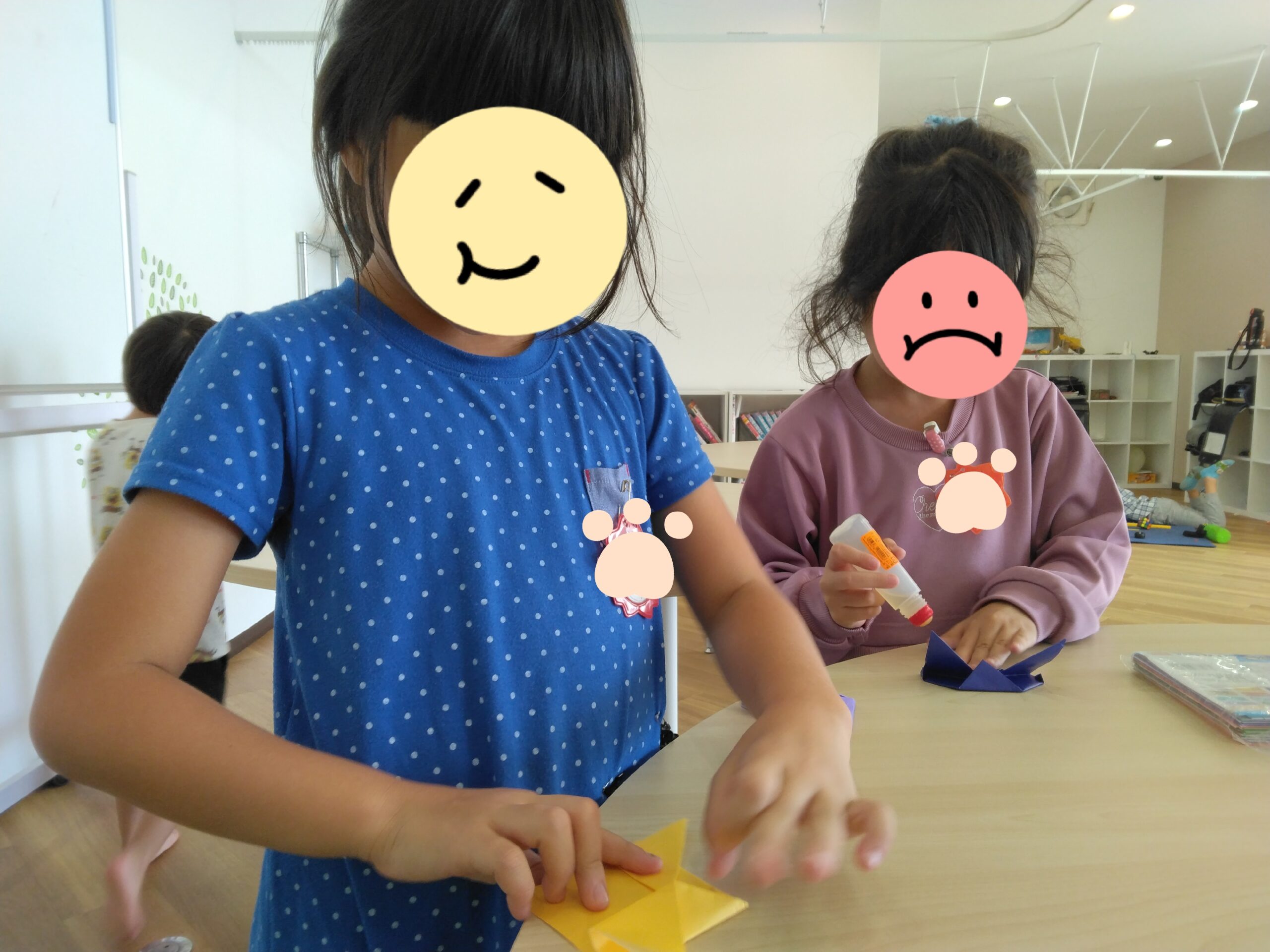 3年生のお姉さんたちが先生になって一年生に教えてあげています。