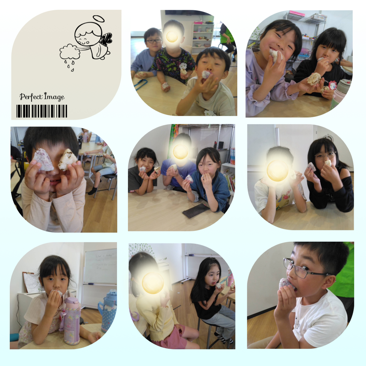 上級生達が帰って来たらイングリッシュタイムをしておやつです🍙