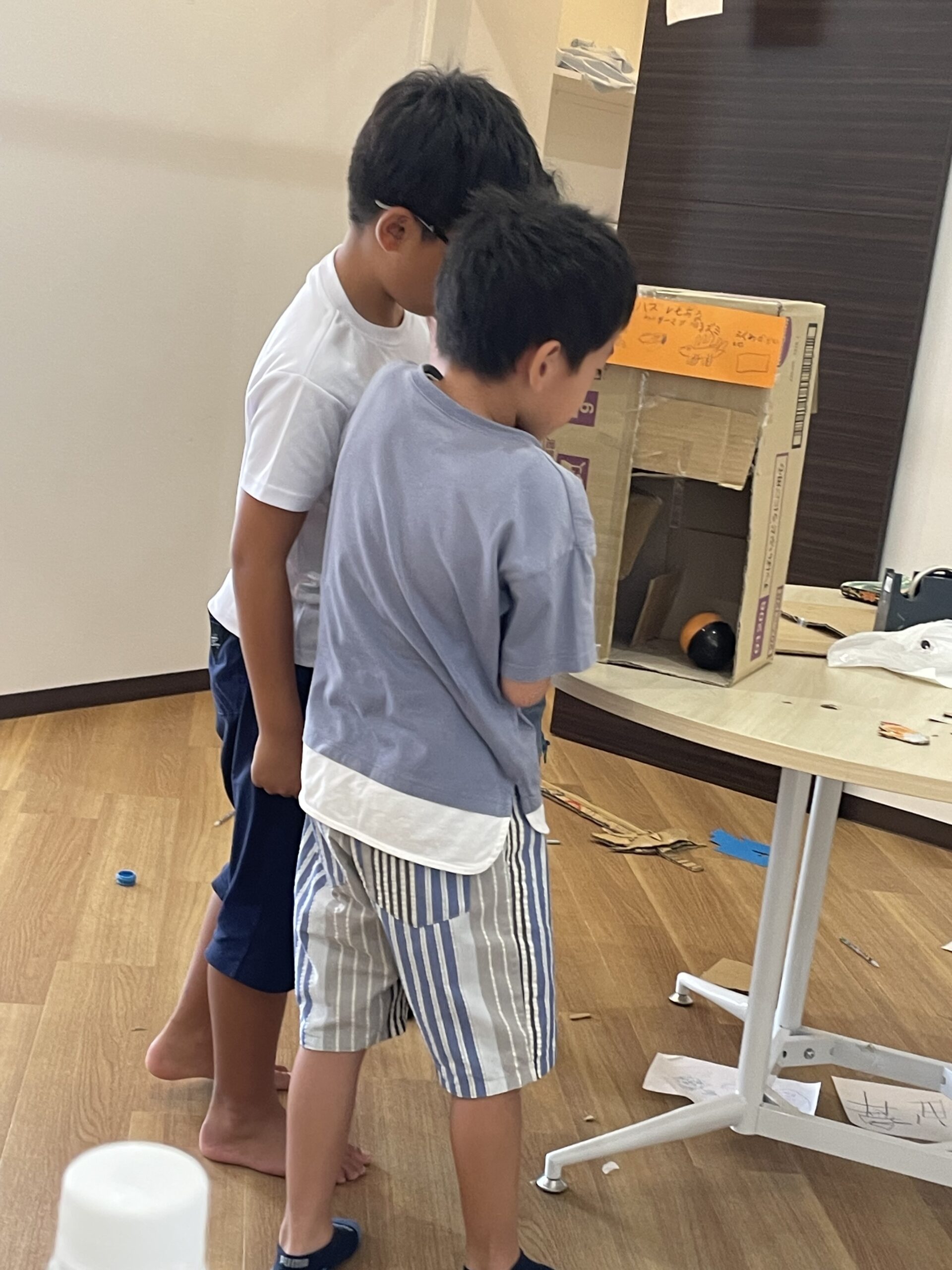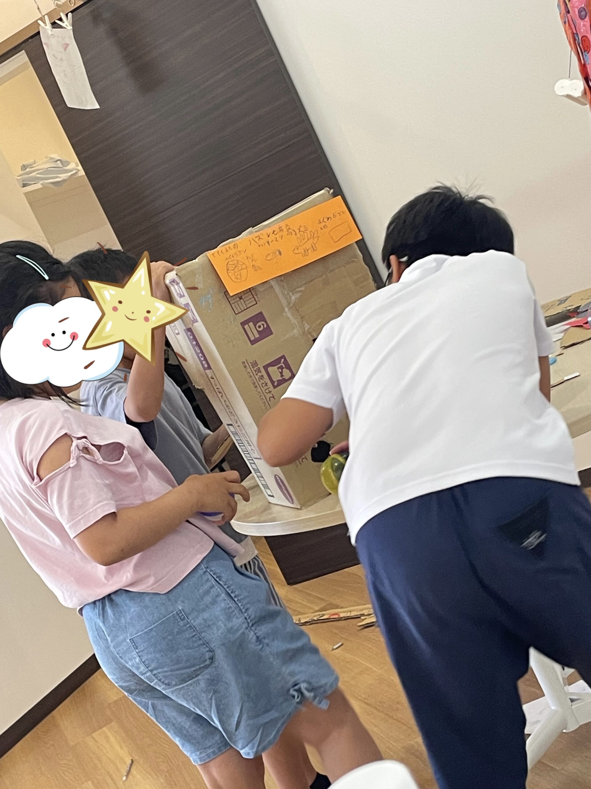 子ども達は『ダンボール欲しい』から始まり、何やらみんなで作っている様子です。