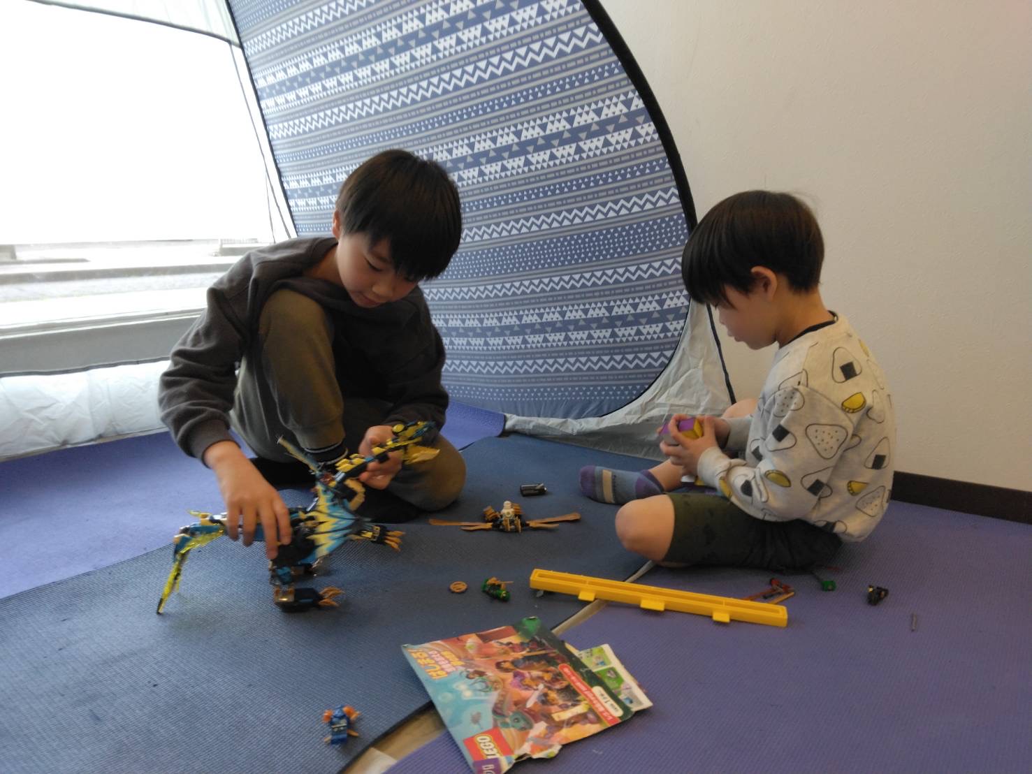 男の子はテントの中に入ってレゴので大きなドラゴンを組み立てていたり…