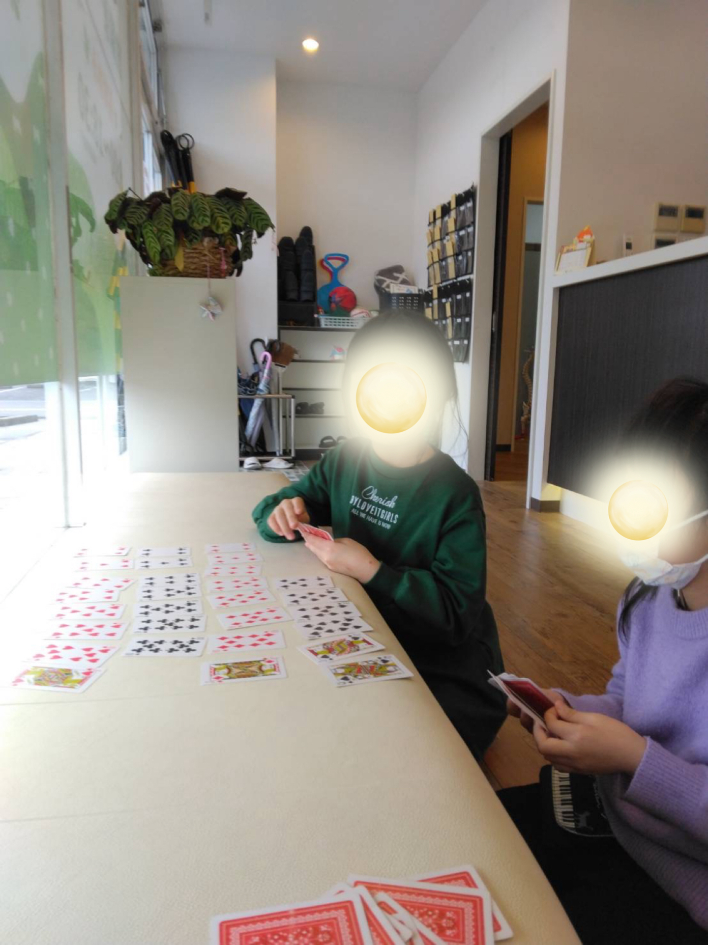 午後は映画鑑賞をしたり、こちらの女の子達は先生と一緒にトランプで「7並べ」🃏をして遊んだり…