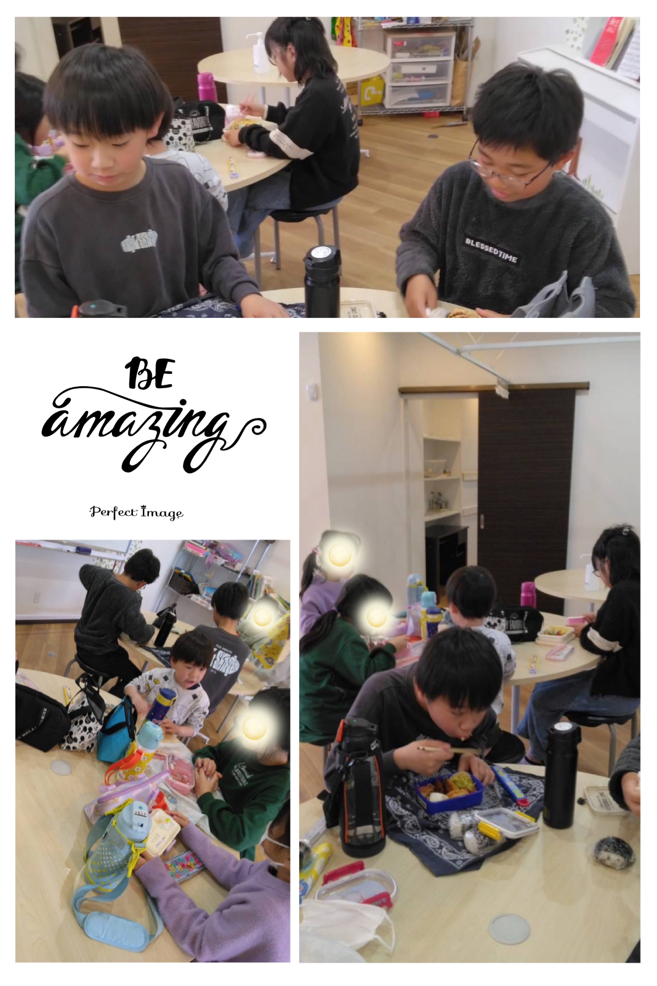 お昼はみんなで楽しくお弁当🍙。お友だちのおかずと取り替えっこして食べ比べをしている子もいましたよ😄