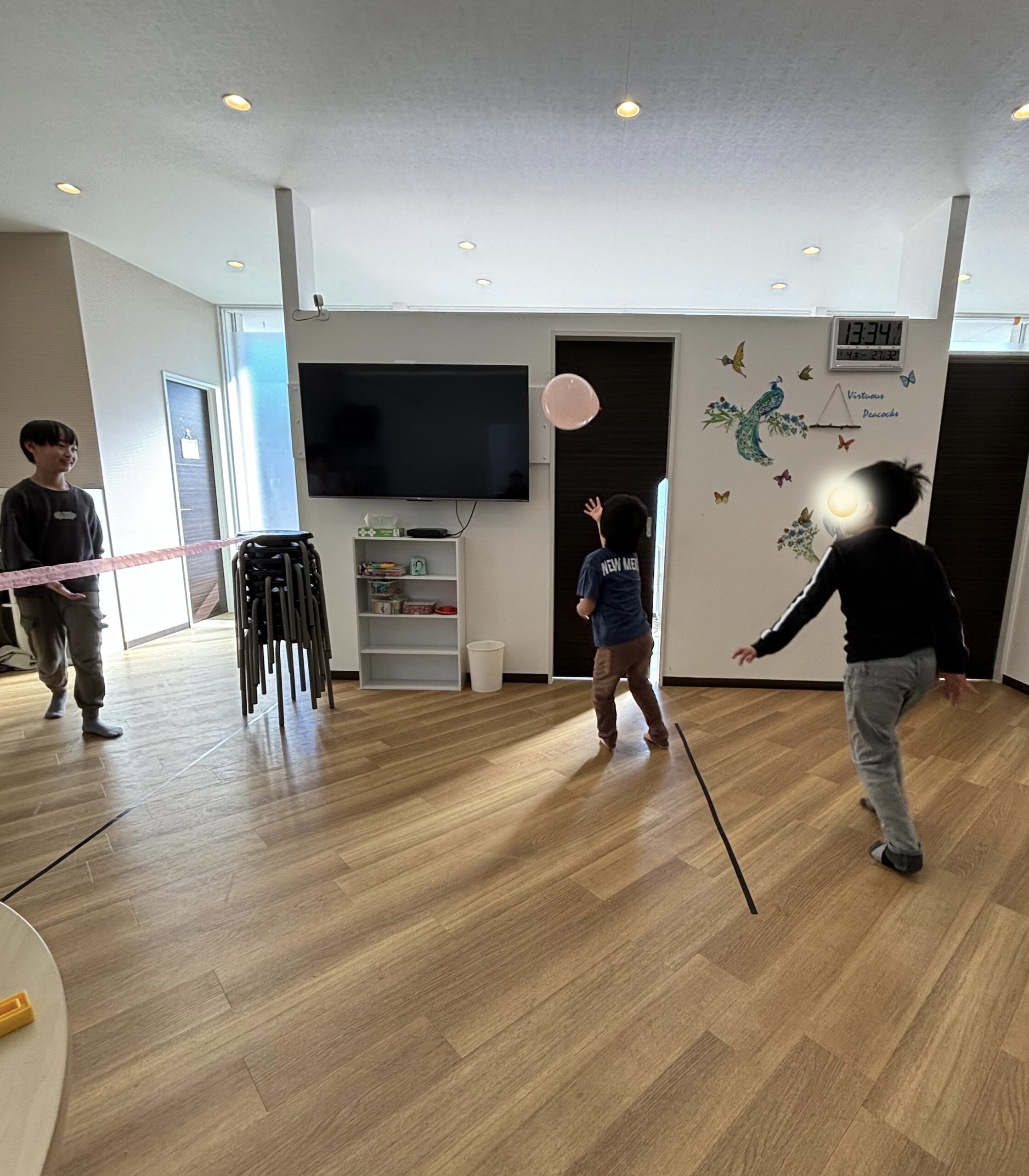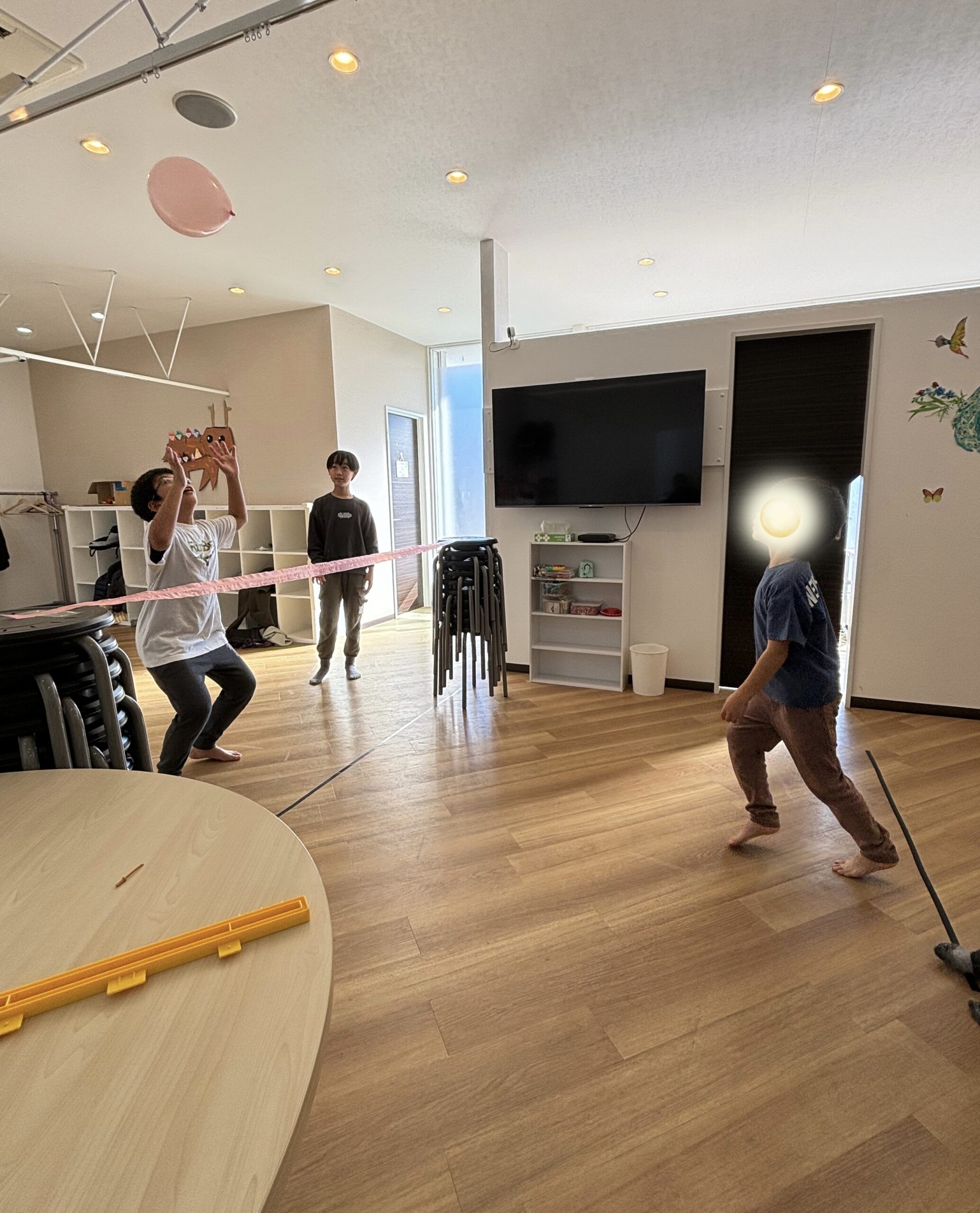 お昼ご飯を食べた後は、風船バレーで大盛り上がりです。