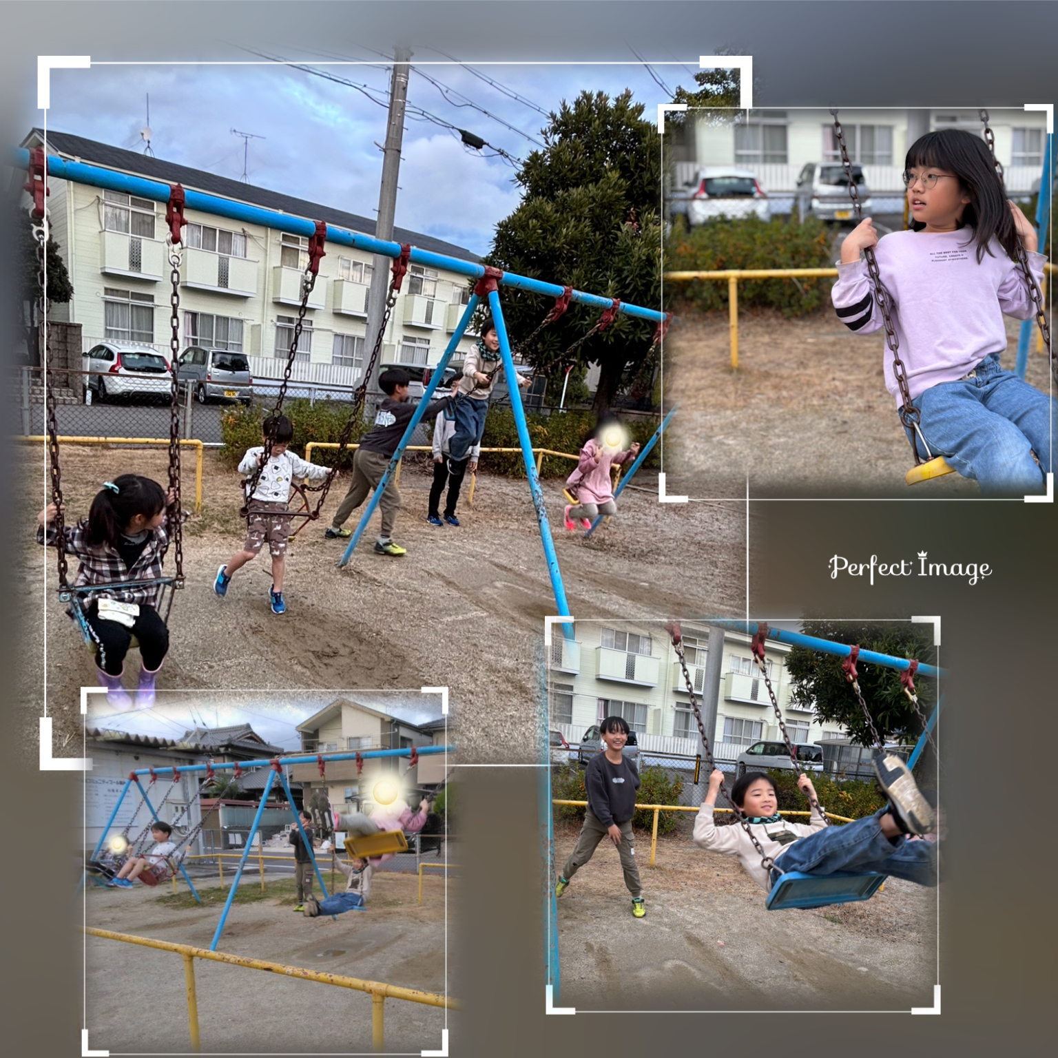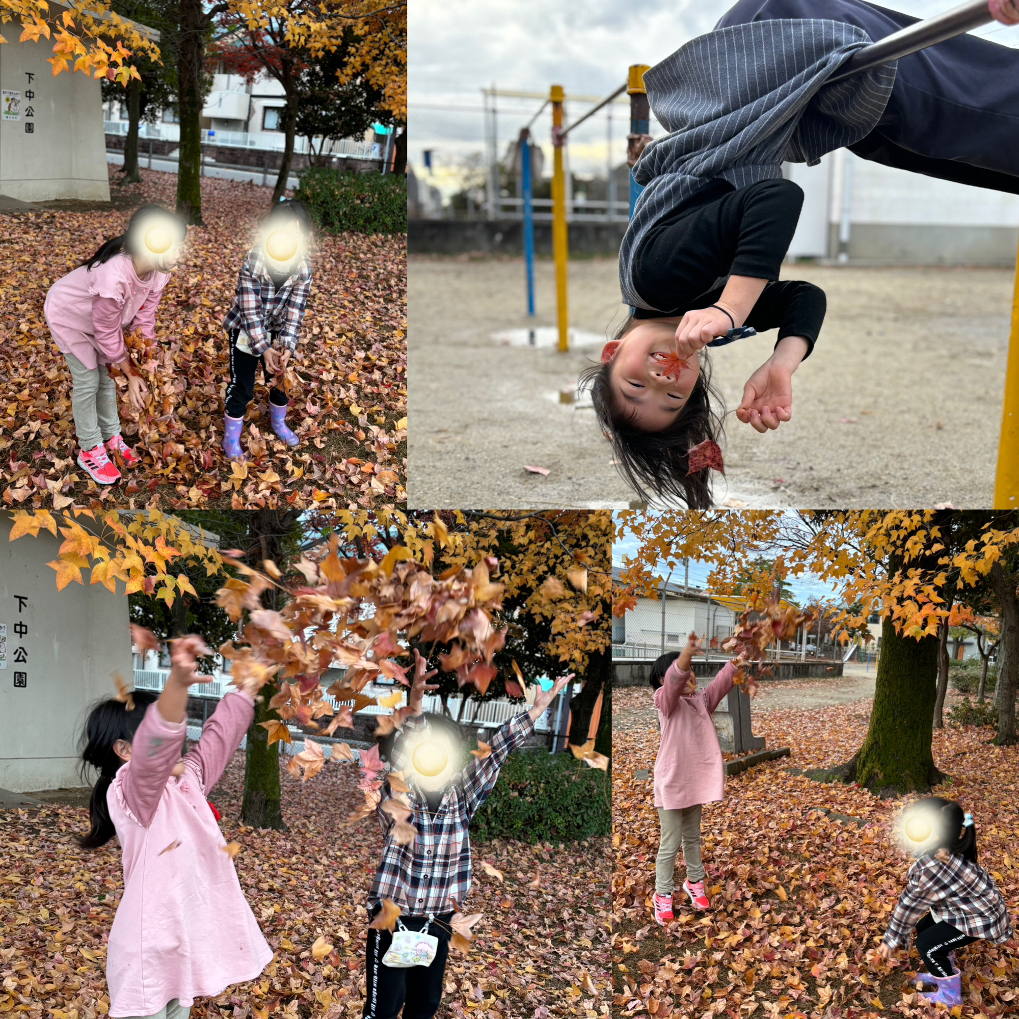 公園は落ち葉がいっぱいだったので、落ち葉を両手いっぱい集めて…落ち葉シャワー!🍁🍁🍁